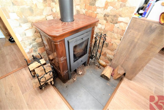 Vytápění zaj...išťují krbová kamna s nerezovým komínem a případně lokální přímotopy.