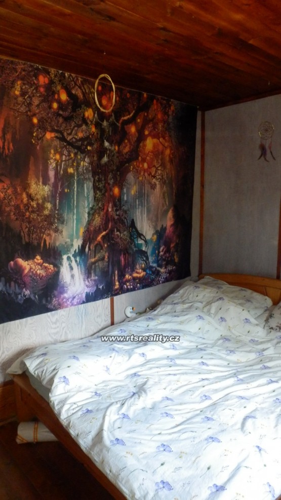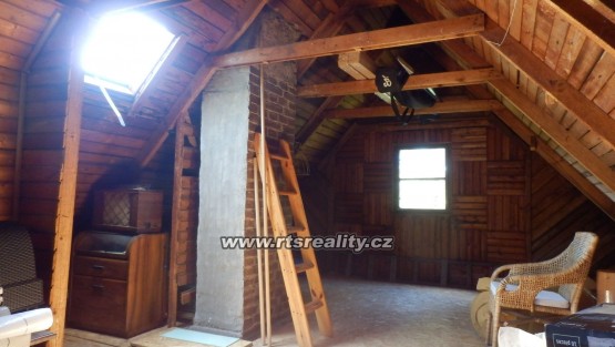 Dispozice chaty: Jedná se o dřevěnou chatu o velikosti 2+ KK. Zasklená veranda, kumbál, koupelna s sociální zařízení WC, obytná část s kuch. koutem a ložnice. Dále půdní prostor, který vybízí k výstavbě dalších dvou pokojů a sklep, který má vstup z boku chaty. Do domu je zavedena obecní voda, elektřina, vytápění chaty je řešeno krbovými kamny, které vytopí celou chatu, odpad je sveden do jímky. V chatě je možné celoroční bydlení s trvalým pobytem.