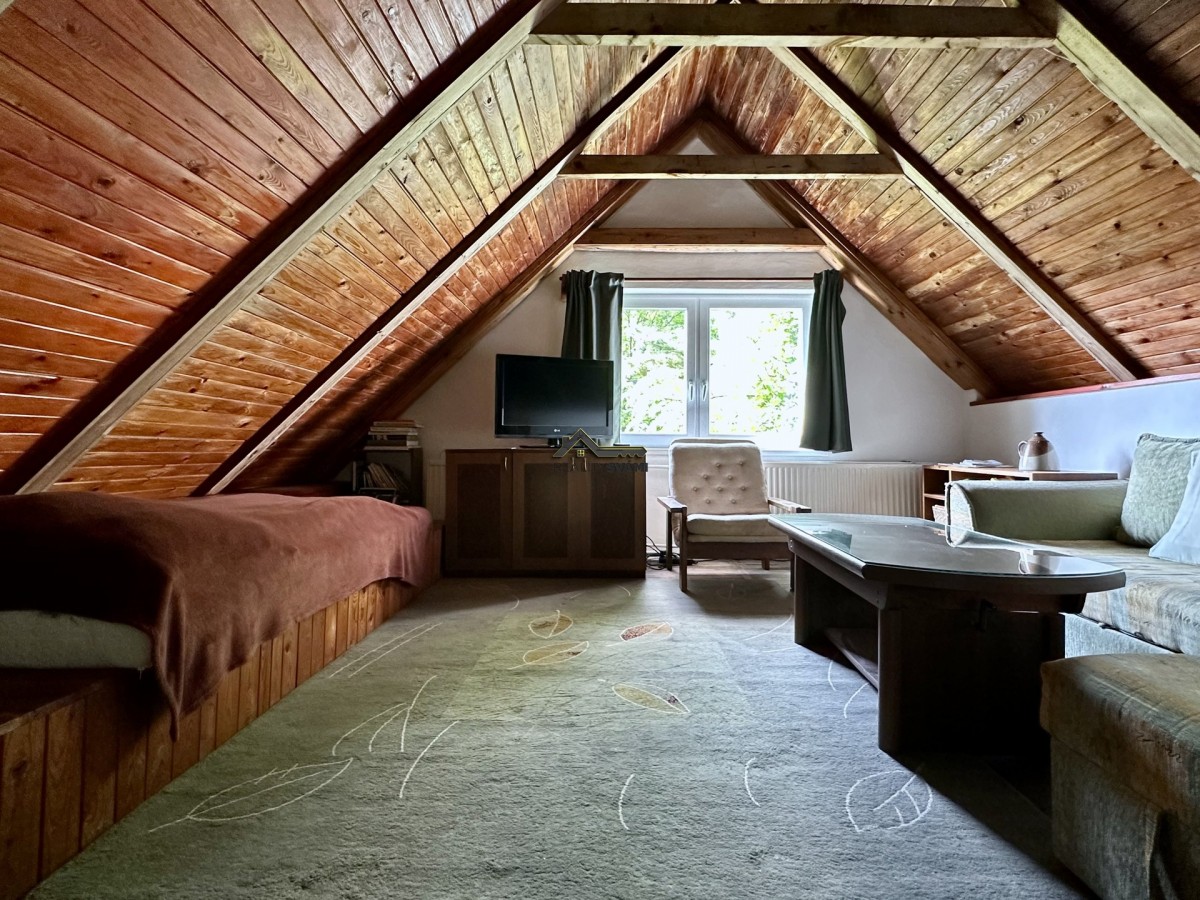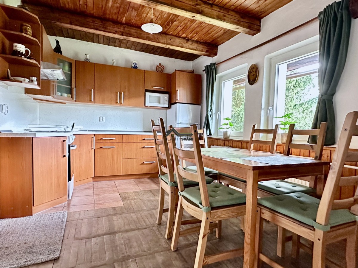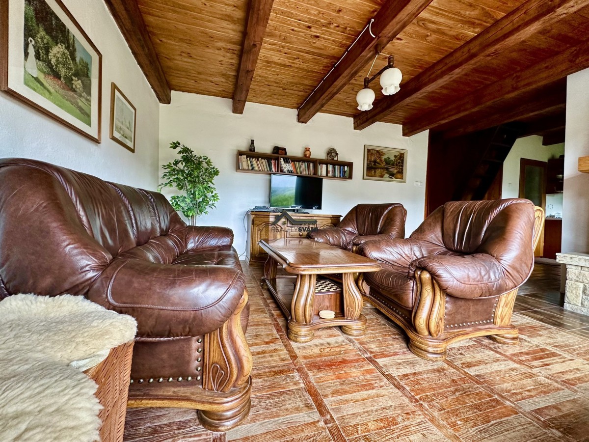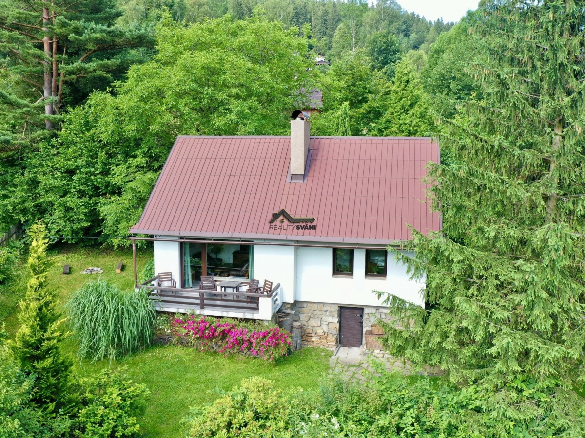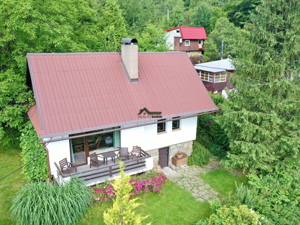 Tato zděná cha...ta se nachází na pozemku o rozloze 715 m2 a to na polosamotě s moc hezkým výhledem na Lysou horu. Chata je podsklepená a další dvě poschodí se skládají ze čtyř pokojů a kuchyně. V prvním poschodí najdeme koupelnu s toaletou, kuchyň a vybavený obývací pokoj, který díky svému velkému oknu nabízí pohled právě na Lysou horu a její okolí. Z obývacího pokoje se vychází na prostornou terasu, kde si můžete dát kávu při východu slunce nebo si večer můžete vypít skleničku vína.