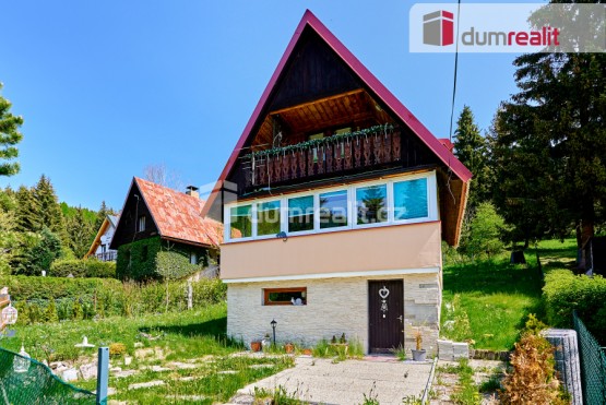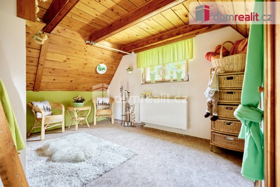 včetně právního servisu a provize RK. Dumrealit. cz Vám nabízí prodej rekreační chaty v Suché nad Jáchymovem. Zděná chata po částečné rekonstrukci je v klidné části obce sousedící s lesem. V přízemí je technická místnost, ... sauna a prádelna. V 1. patře je obývací pokoj s krbem a zasklenou lodžií, kuchyně s linkou Oresi vyrobenou na míru s vestavěnými spotřebiči a koupelna se sprchovým koutem a sociální zařízení WC. Ve 2. patře - podkroví - jsou dva pokoje, z toho jeden s balkonem, a vstup na půdu, která je využívána jako odkládací prostor. Chata má novou plechovou střechu, je napojena na veřejný vodovodní řad, teplá voda je zajištěna el. bojlerem, vytápění novým kotlem na pevná paliva s rozvodem do radiátorů a krbem v obývacím pokoji, odpad je sveden do jímky. Prostředí Krušných hor nabízí krásnou přírodu s velkými možnostmi zimního i letního vyžití. Do lyžařských center je to odsud pár kilometrů, všude okolo jsou lesy protkané běžeckými, turistickými a cyklistickými trasami. Tuto nemovitost lze hradit hypotečním úvěrem, který Vám rádi pomůžeme vyřídit v našem hypotečním centru. Ev. číslo: 643543. Energetický štítek: G