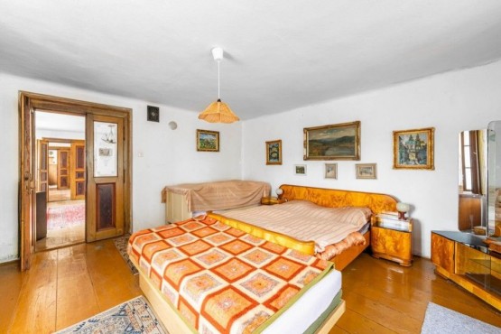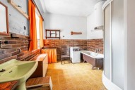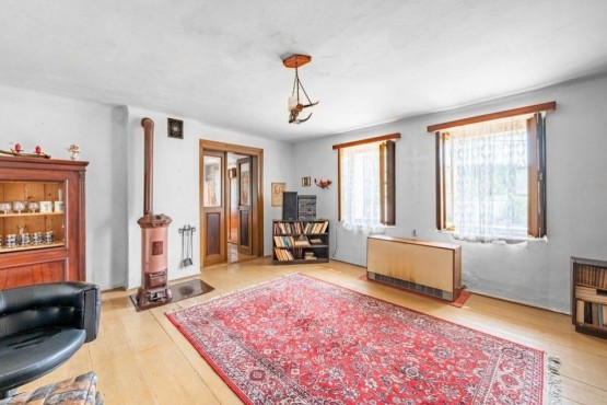 Chalupa k rekonstrukci s větším pozemkem v centru malebné obce Tismice. Chalupa byla postavena v roce 1860, byla celoročně obývaná, nyní je bez trvalého využívání. Za dobu užívání byla provedena pouze základní modernizace... - elektro, voda, kanalizace, sociální zařízení WC, koupelna. Od vstupního prostoru do domu (chodby) je vlevo velká koupelna s vanou, sprchovým koutem a sociální zařízení WC. Topení v koupelně zajišťují akumulační kamna. Vpravo od vchodu je postupně kuchyň, z ní se vchází do pokoje (v obou místnostech jsou akumulační kamna + kamna na tuhá paliva). Posledním pokojem je ložnice. Místnosti jsou řazeny za sebou, kuchyň a další pokoj je tedy průchozí. Budova je částečně podsklepena. Vchod do sklepa, stejně tak i na půdu je ze vstupní chodby. Podlahová krytina je dlažba, v kuchyni je PVC a v pokojích jsou prkna z masivu. Vedle koupelny je ještě prostorná komora. Na obytnou budovu navazuje ještě bývalý chlév, který slouží jako dílna. Na pozemku jsou ještě dvě kůlny a malý domek s jednou místností.