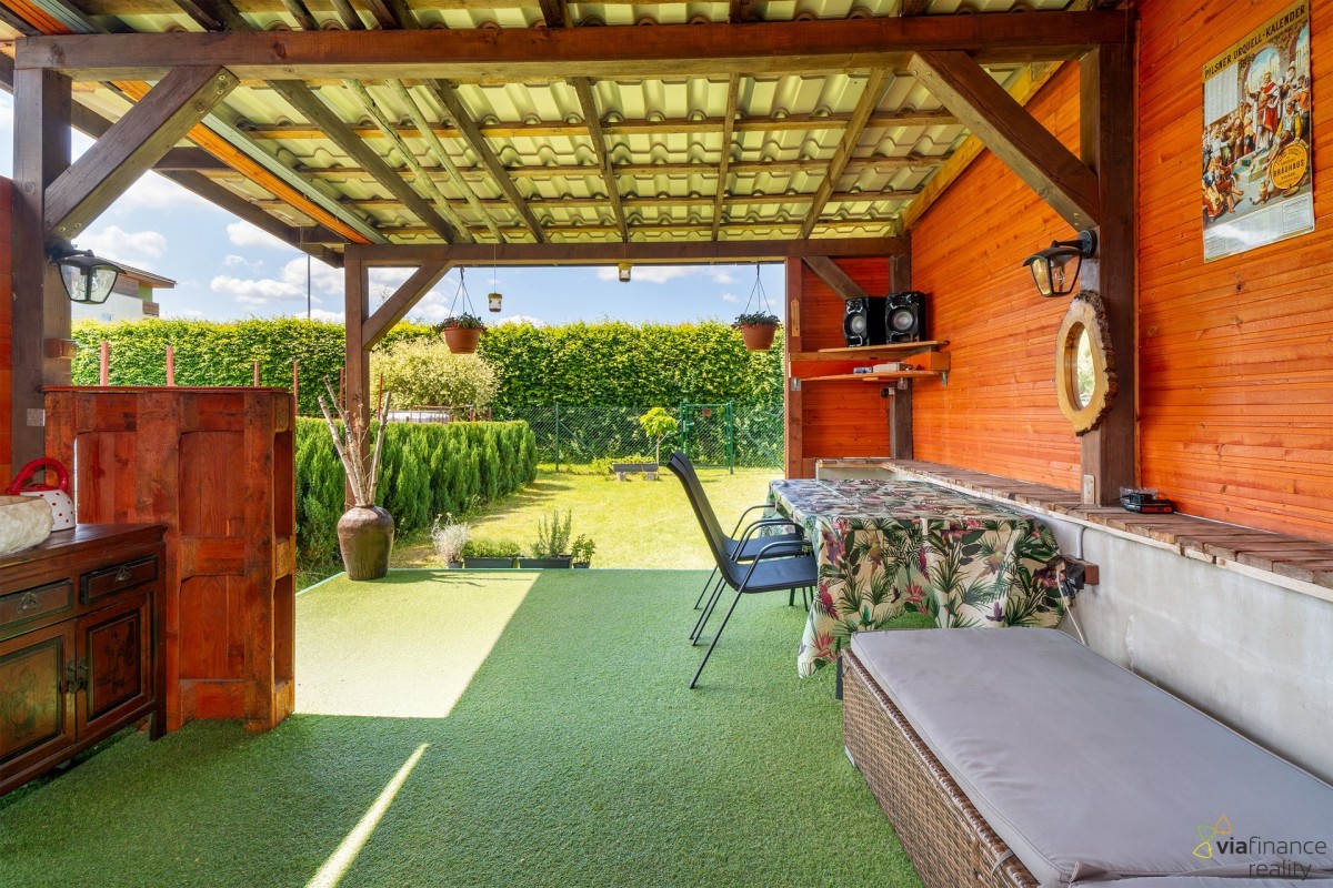 SLEVA - máme pro Vás zvýhodněnou nabídku prodeje zahradní chatky s velkorysou krytou pergolou a nadzemním bazénem pro chvilky vašeho odpočinku.