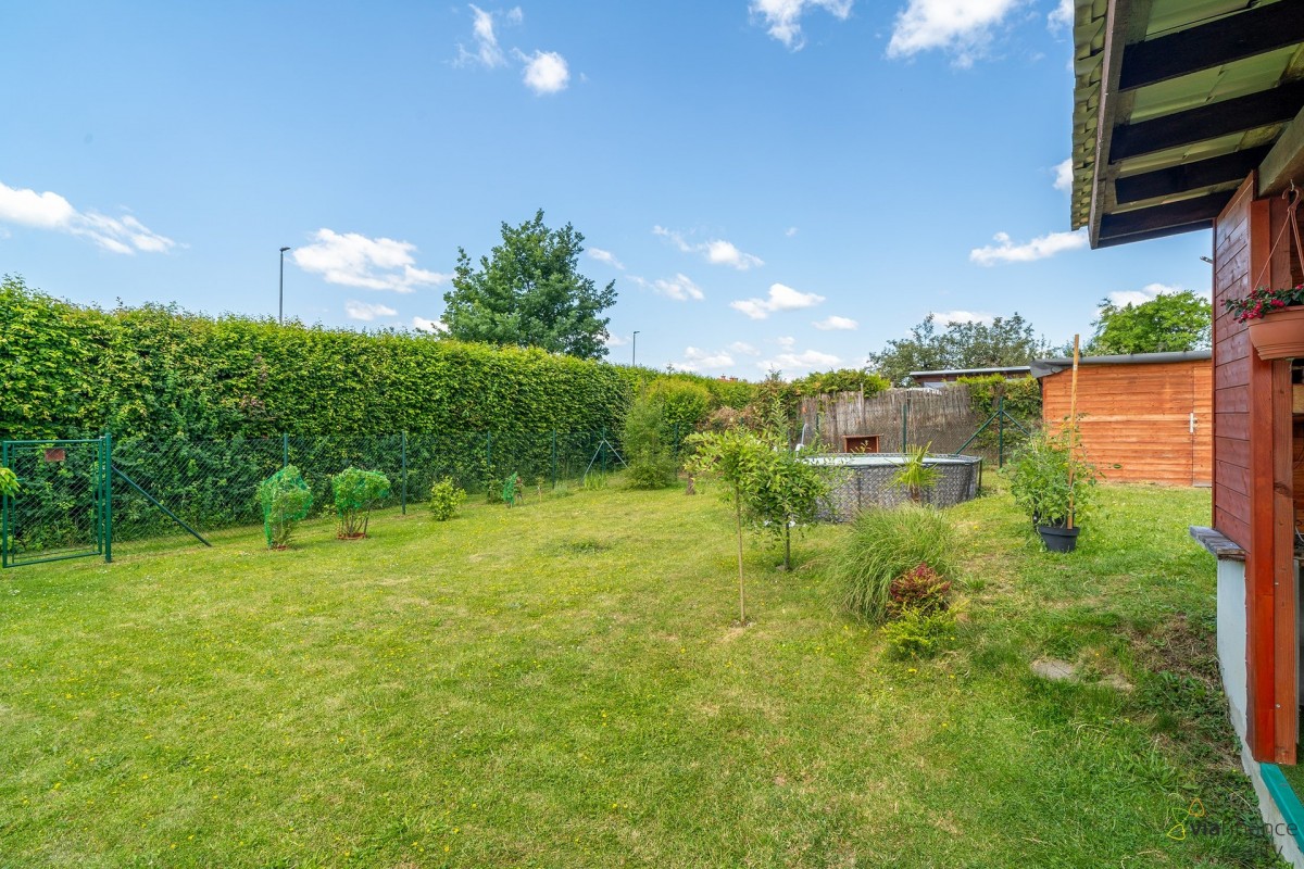 Jde o nově postavenou chatku z dřevěných palubek o půdorysu 3, 5 krát 3 m s částečně krytou pergolou o velikosti 6 krát 4 m. Chatka je zateplena vatou o síle 10 cm, je částečně podsklepena. Na zahradě je dále nadzemní bazén, dřevěná chatička pro uložení zahradního náčiní a přístavek s chemickým záchodem.