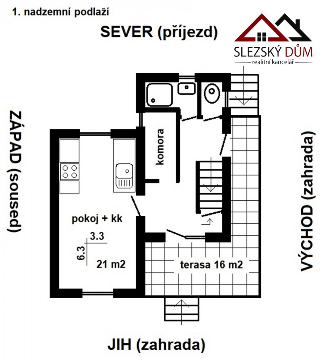 • Dispozice: 4+kk (4 obytné místnosti, z toho jedna spojená s kuchyní)