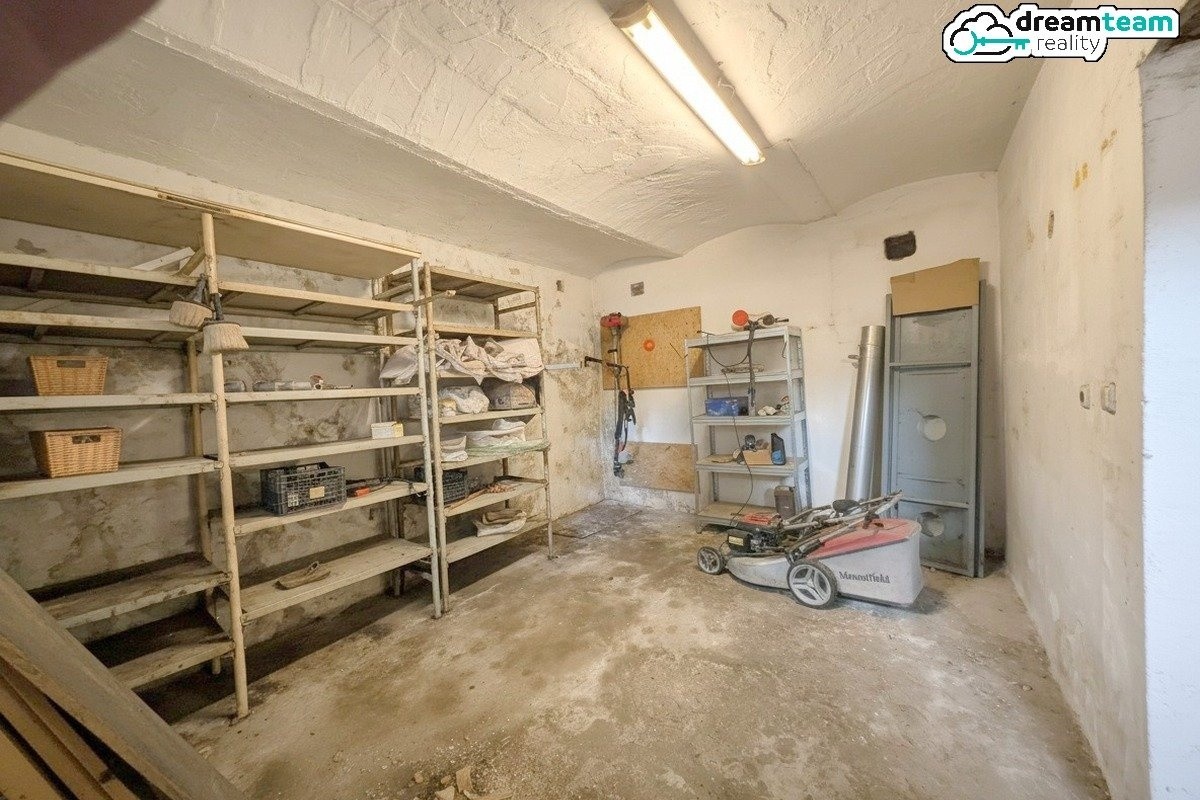 Sklep jak z pohádky pro kutily. Přes 100 m² sklepních prostor s dílnou s klenutými stropy a samostatným vstupem ze zahrady. Kutil Tim, Láďa Hruška i Přemek Podlaha by si tu mohli natočit celou sezónu svých pořadů zároveň. Kdo má rád práci rukama, tady bude jako doma.