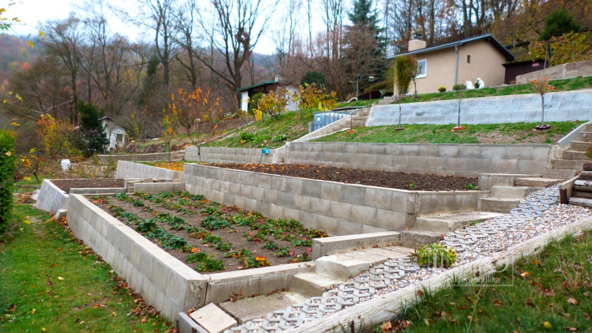 Zdroj pitné vody (4m od hranice pozemku) zajišťuje nedaleká vodárna a užitkovou vodu zajišťuje nádrž (oba zdroje lze využívat pro neomezené čerpání). Zásobník na 1000L na dešťovou vodu. Pozemek je udržovaný, mírně svažitý s betonovými terasami, na zahradě jsou ovocné stromy, jabloně 5 krát , nektarinky 1 krát , višeň 1 krát a vinná réva. V sezóně majitelé pěstují jahody, rajčata, papriky, okurky, dýně a melouny. Na terase u chaty je položena vymývaná dlažba, na které přes léto majitelé využívají altán s příjemným posezením, výhledem a bazénem s pískovou filtrací.