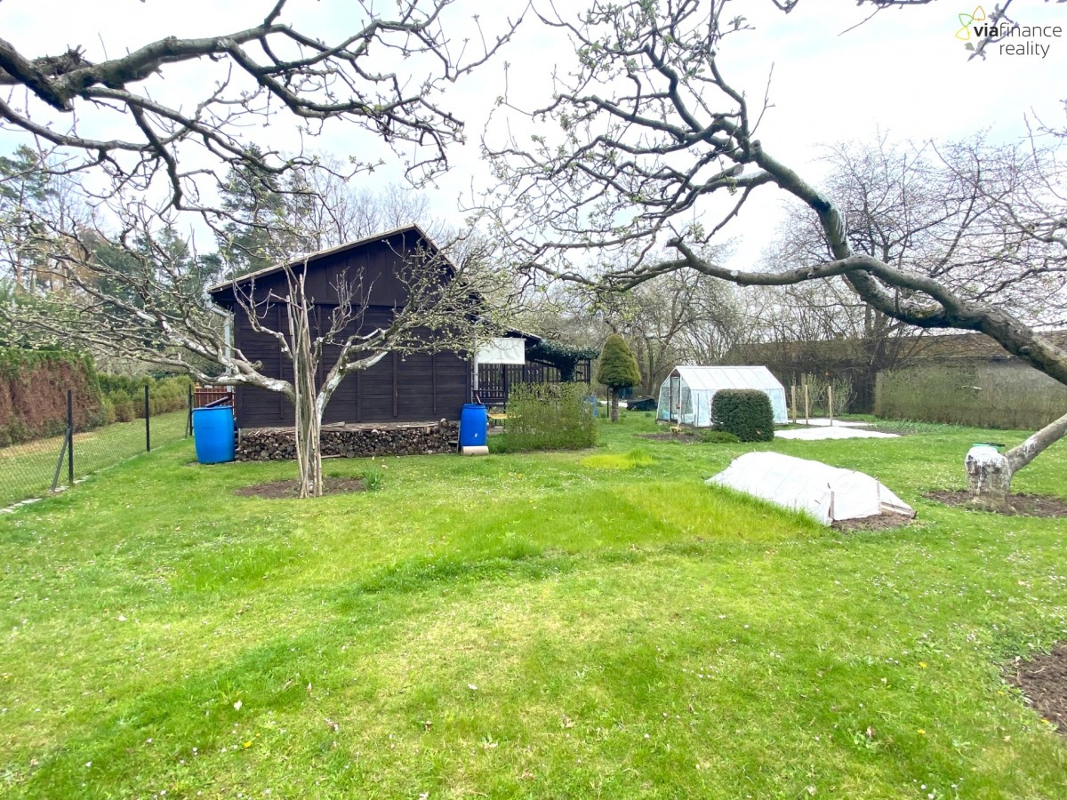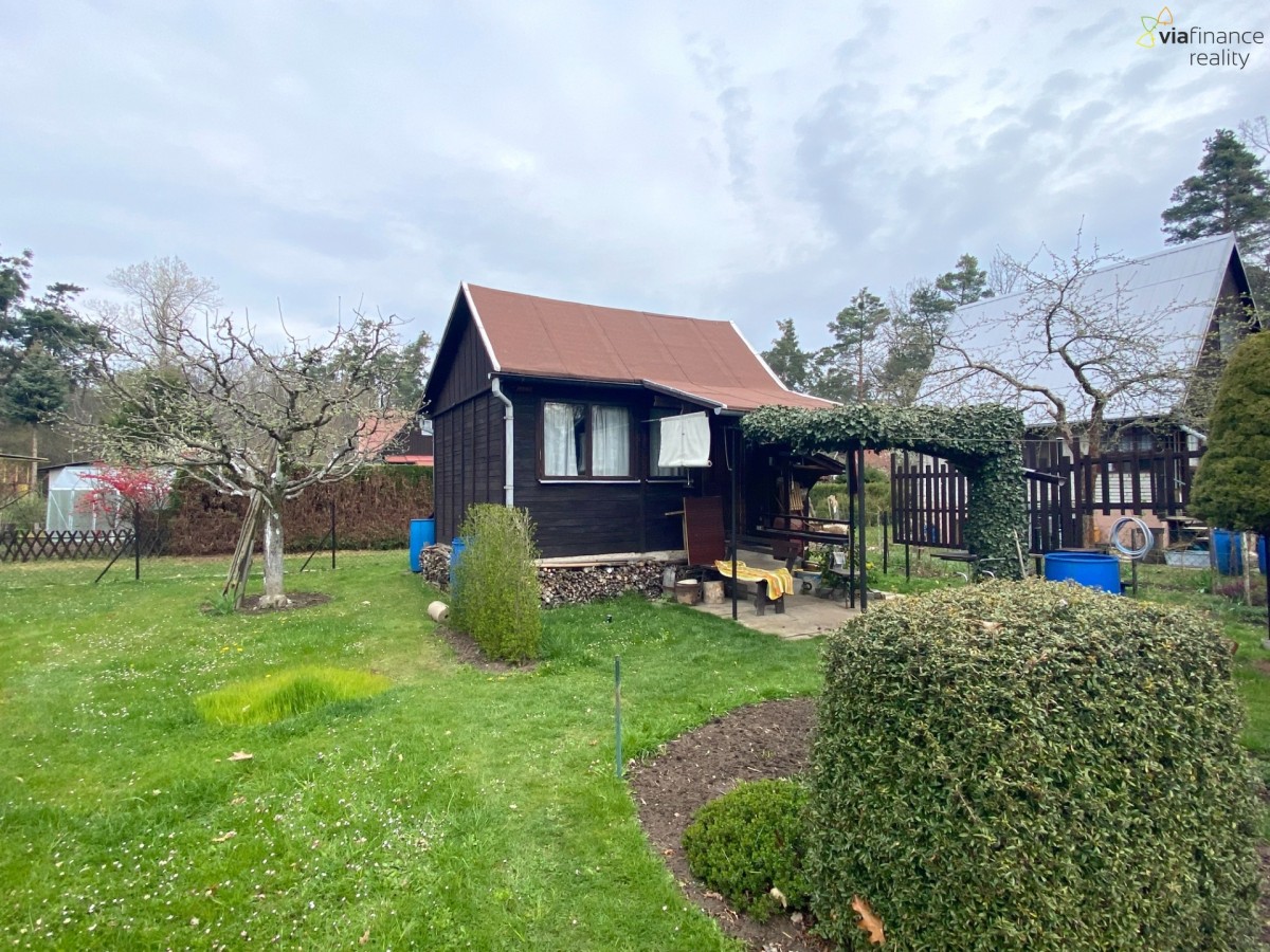 Dřevěná chata (17 m2) je postavena na vlastním oploceném pozemku o celkové roz...loze 384 m2, je podsklepená a má částečně využitelný půdní prostor. Na chatu je napojen přístřešek na nářadí. Na zahradě se nachází skleník, ovocné stromy a keře. Pozemek je vhodný i k výstavbě menšího domečku do 25 m2.