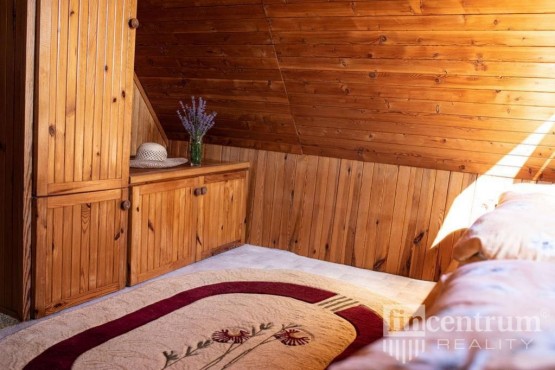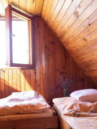 Chatka je menší vhodná k posezení u dobrého oběda nebo večeře a kafe nebo vína při západu sluníčka. Lze vařit plynovým mobilním sporákem nebo elektrickém vařiči. V patře jsou dva pokoje, kde se pohodlně vyspí čtyři lidi.