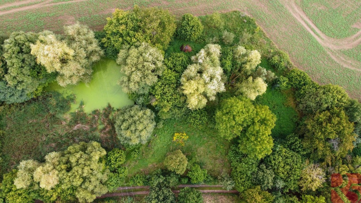 K domu je zahrada o rozloze 2 875m2 jen 30 m od domu, situovaná na hrázi rybníka s malým potůčkem, osázená ovocnými stromy, ideální k chovu zvířat, nebo pěstování zahradních a rostlinných plodin.