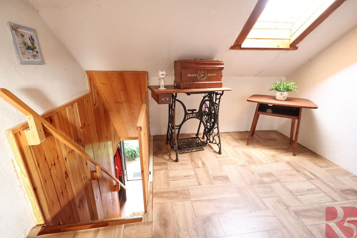 Podkroví je přístupné schodištěm z předsíně a nachází se v něm tři pokoje, každý s odděleným vstupem.