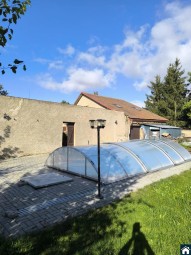 Chalupa se nachází na rovinatém pozemku v širším centru obce a je napojena na elektřinu, vodovod, plyn, odpad je do 3 komorového septiku. Na zahradě jsou další objekty stodola, kryté venkovní posezení, sklep, zastřešený bazén a kopaná studna(19m). V obci je škola, pošta a dětské hřiště. Lékař je v Budyni a kompletní občanská vybavenost ve 12 km vzdálené Roudnici. Dostupnost do Prahy autem cca 30min na metro Kobylisy a 600m od domu stanice bus do Roudnice. Nutno vidět.