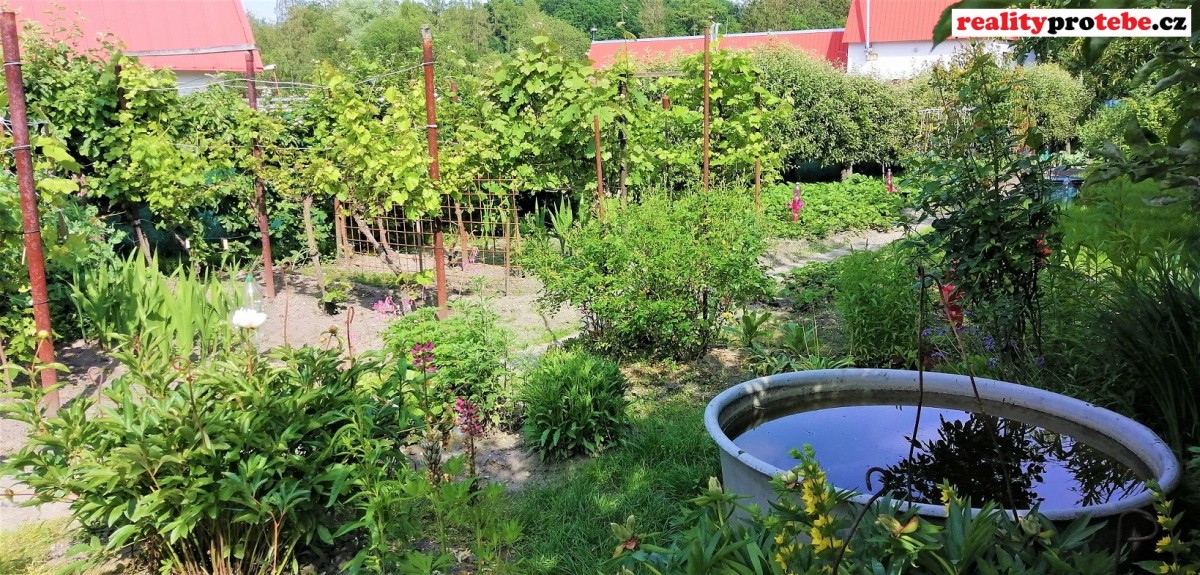 Zahrada je pro skutečné milovníky zahradničení, nabízí dvě "aleje" jabloní upravených do formy plotu s nízkou výškou, švestky, meruňku, nektarinku, třešeň, čtyři řady vinných rév různých odrůd, maliny, ostružiny, borůvky, velké množství jahodníků, rybízu a angreštu. K potěšení oka a domů do vázy jsou zde také záhony mnoha druhů květin a okrasné keře (rododendron, buxus atd. ). Díky množství kompostu a úrodné půdě nabízí zahrada každoročně velkou úrodu hrášku, okurek, rajčat a dalších případně zasazených plodin. Místo před chatkou nabízí slunce i stín a je tak vhodné k relaxaci i odpočinku.