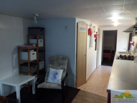 Nabízím k prodeji zahradu s mobilheimem v Pardubicích. Dispozice: kuchyně s obývacím pokojem, šatna, ložnice a koupelna s Wc, malou vanou a umyvadlem. Celková plocha mobilheimu je 27m2. Celková plocha zahrady... je 310m2. Na pozemku je vrtaná studna 13m hluboká, tříkomorový septik 6m3. Do domu je zavedena voda ze studny, el. , odpady jsou svedeny do septiku. Plynový sporák je napojen na plynovou bombu. V obývacím pokoji je klimatizační jednotka, v koupelně el. žebříček. Voda je ohřívána přes el. bojler 80l. Velmi nízké náklady na bydlení cca 1. 200, - měs +internetové připojení. Pozemek není ničím zatížen ale nejde financovat hypotečním úvěrem, pouze spotřebitelským úvěrem na cokoliv se zástavou jinou nemovitostí. S financování ráda zdarma pomohu.