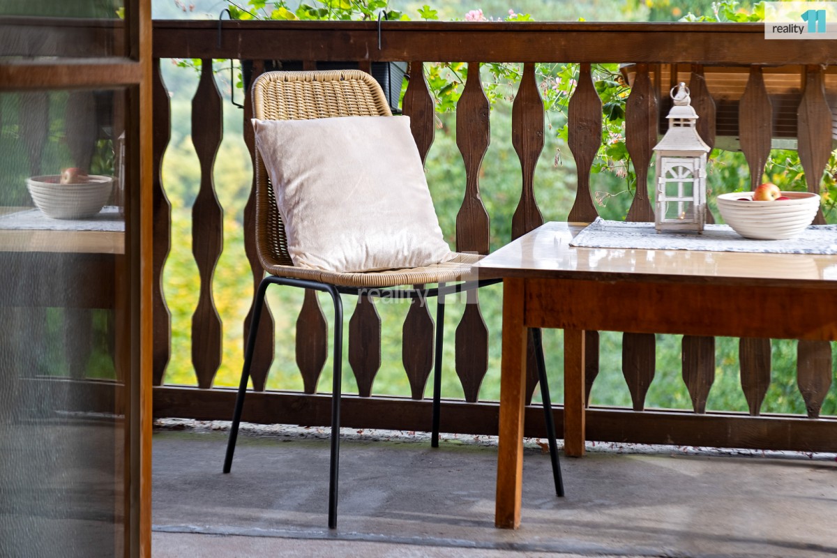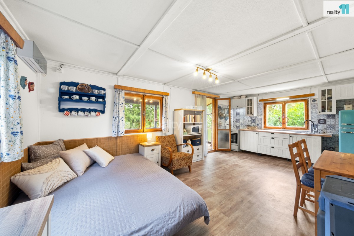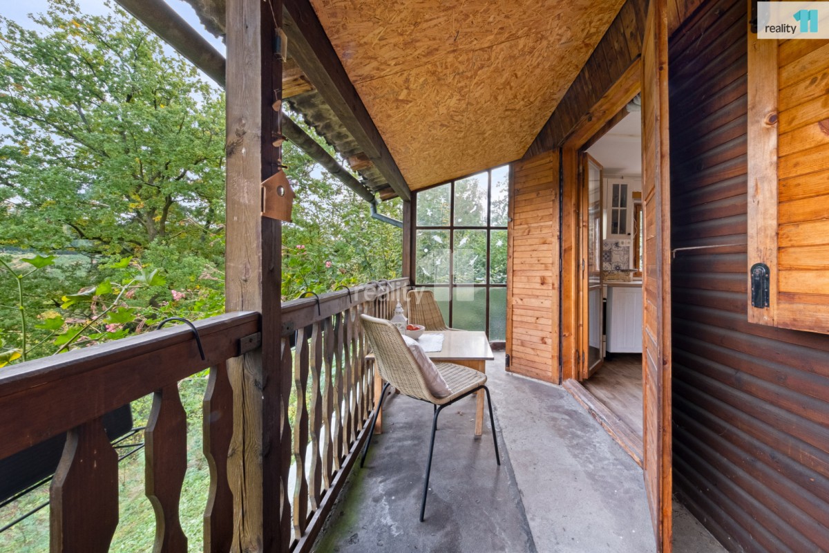 Zprostředkuji prodej dřevěné chaty, která se nachází na pozemku velikosti 482 m², v obci Barchovice, katastrální území Hryzely. Chata disponuje hlavní obytnou místností s kuchyňskou linkou, se vstupem na prostorný balkon... a výhledem do přírody. Dále ložnicí a koupelnou se sprchovým koutem a sociální zařízení WC. Chata je podsklepená a nabízí tak dostatek prostoru pro uskladnění nářadí, dřeva nebo sportovního vybavení. Z inženýrských sítí je zavedena elektřina, voda je přivedena z vlastní studny, odpad je sveden do septiku. Vytápění je řešeno kamny na dřevo nebo elektrickým panelem. Na pozemku je solární sprcha a koupací káď, které jsou příjemným bonusem v letních měsících. Zatravněný svažitý pozemek nabízí možnost vytvořit terasovité záhony nebo osázení okrasnou zelení. Součástí prodeje je i podíl 1/9 na příjezdové cestě.