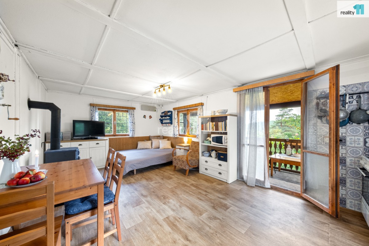 Okolí tvoří lesy, příroda a soukromí, přesto je dobře dostupné autem. Nemovitost je ideální pro víkendový odpočinek, letní dovolenou nebo celoroční relax v přírodě. Ev. číslo: 27835. Energetický štítek: G