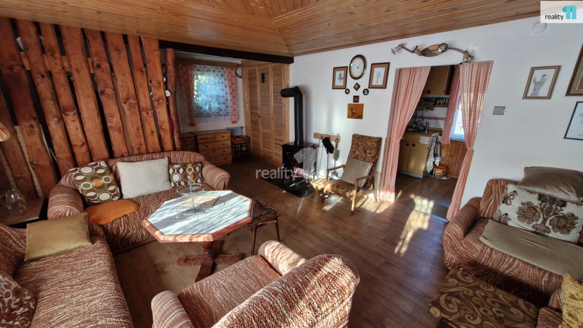 Exklusivně prodej podkrušnohorské chalupy v obci Mezihorská. Jedná se o mimořádnou lokalitu pro kolaře, běžkaře, houbaře a všechny milovníky hor. Chalupa byla užívána převážně od jara do podzimu, ideální jsou víkendové p...obyty. V kamenném suterénu o 85m² zastavěné plochy se nachází společenská místnost s posezením a krbem o 35m², dále zádveří, koupelna se sprchovým koutem a sociální zařízení WC. Navazuje garáž s 23m² s vybavenou dílnou a skladová místnost. První nadzemní cihlové poschodí do kterého vedou dřevěné schody nabízí prostornou halu se vstupy do ložnice s kamny na tuhá paliva o 9m², skladu ale především obývacího pokoje o 24m² kde jsou instalovány krbová kamna a kuchyně s jídelním koutem. Kuchyňka je vybavena myčkou, el. troubou, plynovým vařičem, kamny na tuhá paliva a průtokovým ohřívačem vody. Podlahy v tomto patře jsou v kombinaci dřeva a PVC krytiny. V zadní části obývacího pokoje je východ na terasu, které je vystavěna na jižní stranu do zahrady. Dále se z haly v prvním patře dostanete po dřevěných schodech do druhého nadzemního patra. Toto vzdušné a interiérově zajímavé dílo vás dřevěnou lávkou spojí do druhé podkrovní ložnice o 11m² a půdního prostoru. Do chalupy je přivedeno 230/380V, voda je odebírána z vlastní studny a čerpána čerpadlem, teplou vodu zajišťuje el. 80l. bojler, odpad je sveden do septiku. Bonusem je nová krytina střechy z kanadského šindele z roku 2022. Zahrada na jižní a západní straně chalupy o ploše 309m² nabízí skleník, několik vzrostlých stromů a keřů. Pokud Vás nabídka zaujala, neváhejte mě kontaktovat k domluvení prohlídky. Případné financování Vám zajistí naše specialistka. Ev. číslo: 27130. Energetický štítek: G