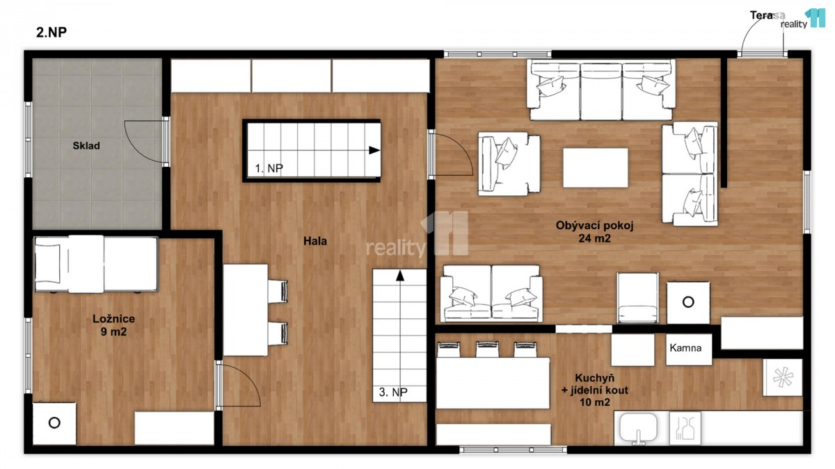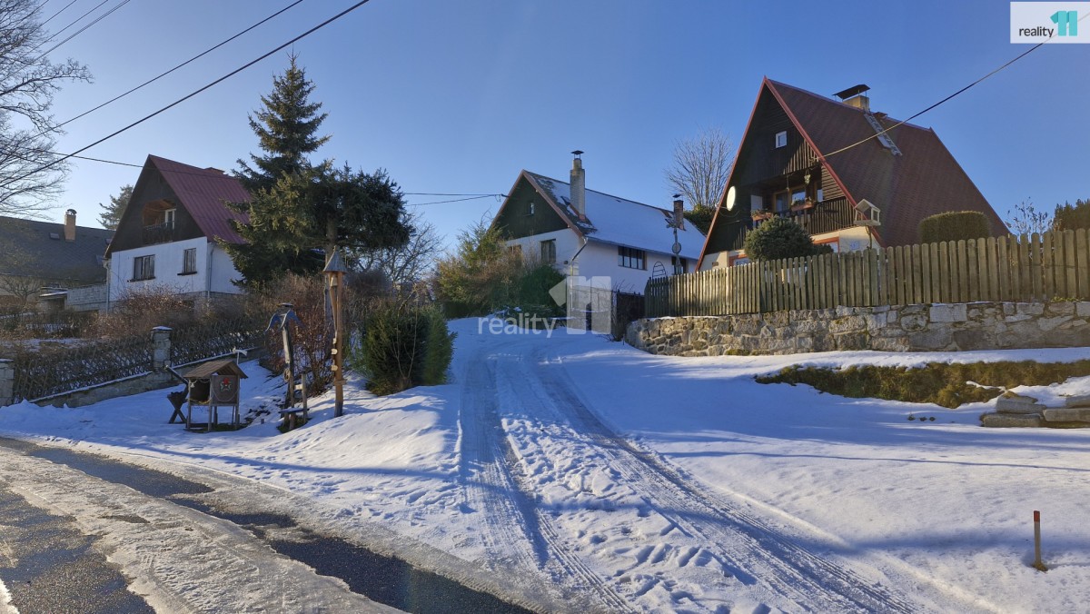 Exklusivně prodej podkrušnohorské chalupy v obci Mezihorská. Jedná se o mimořádnou lokalitu pro kolaře, běžkaře, houbaře a všechny milovníky hor. Chalupa byla užívána převážně od jara do podzimu, ideální jsou víkendové p...obyty. V kamenném suterénu o 85m² zastavěné plochy se nachází společenská místnost s posezením a krbem o 35m², dále zádveří, koupelna se sprchovým koutem a sociální zařízení WC. Navazuje garáž s 23m² s vybavenou dílnou a skladová místnost. První nadzemní cihlové poschodí do kterého vedou dřevěné schody nabízí prostornou halu se vstupy do ložnice s kamny na tuhá paliva o 9m², skladu ale především obývacího pokoje o 24m² kde jsou instalovány krbová kamna a kuchyně s jídelním koutem. Kuchyňka je vybavena myčkou, el. troubou, plynovým vařičem, kamny na tuhá paliva a průtokovým ohřívačem vody. Podlahy v tomto patře jsou v kombinaci dřeva a PVC krytiny. V zadní části obývacího pokoje je východ na terasu, které je vystavěna na jižní stranu do zahrady. Dále se z haly v prvním patře dostanete po dřevěných schodech do druhého nadzemního patra. Toto vzdušné a interiérově zajímavé dílo vás dřevěnou lávkou spojí do druhé podkrovní ložnice o 11m² a půdního prostoru. Do chalupy je přivedeno 230/380V, voda je odebírána z vlastní studny a čerpána čerpadlem, teplou vodu zajišťuje el. 80l. bojler, odpad je sveden do septiku. Bonusem je nová krytina střechy z kanadského šindele z roku 2022. Zahrada na jižní a západní straně chalupy o ploše 309m² nabízí skleník, několik vzrostlých stromů a keřů. Pokud Vás nabídka zaujala, neváhejte mě kontaktovat k domluvení prohlídky. Případné financování Vám zajistí naše specialistka. Ev. číslo: 27130. Energetický štítek: G