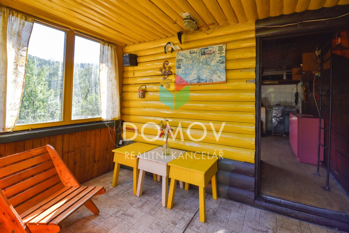 Dřevěný srub se zděnou podezdívkou je dispozičně řešen jako obytná místnost s výstupem do obytného podkroví vhodného k přespání a oddělenou terasou. Objekt je z části podsklepen a má novou střechu z doškové lepenky včetně nových okapů se svodem. V chatě je zavedena elektřina. Na pozemku u chaty je suchý záchod. Vytápění je zde zajišťováno novými kamny. Venkovní komín je v tuto chvíli před rekonstrukcí.