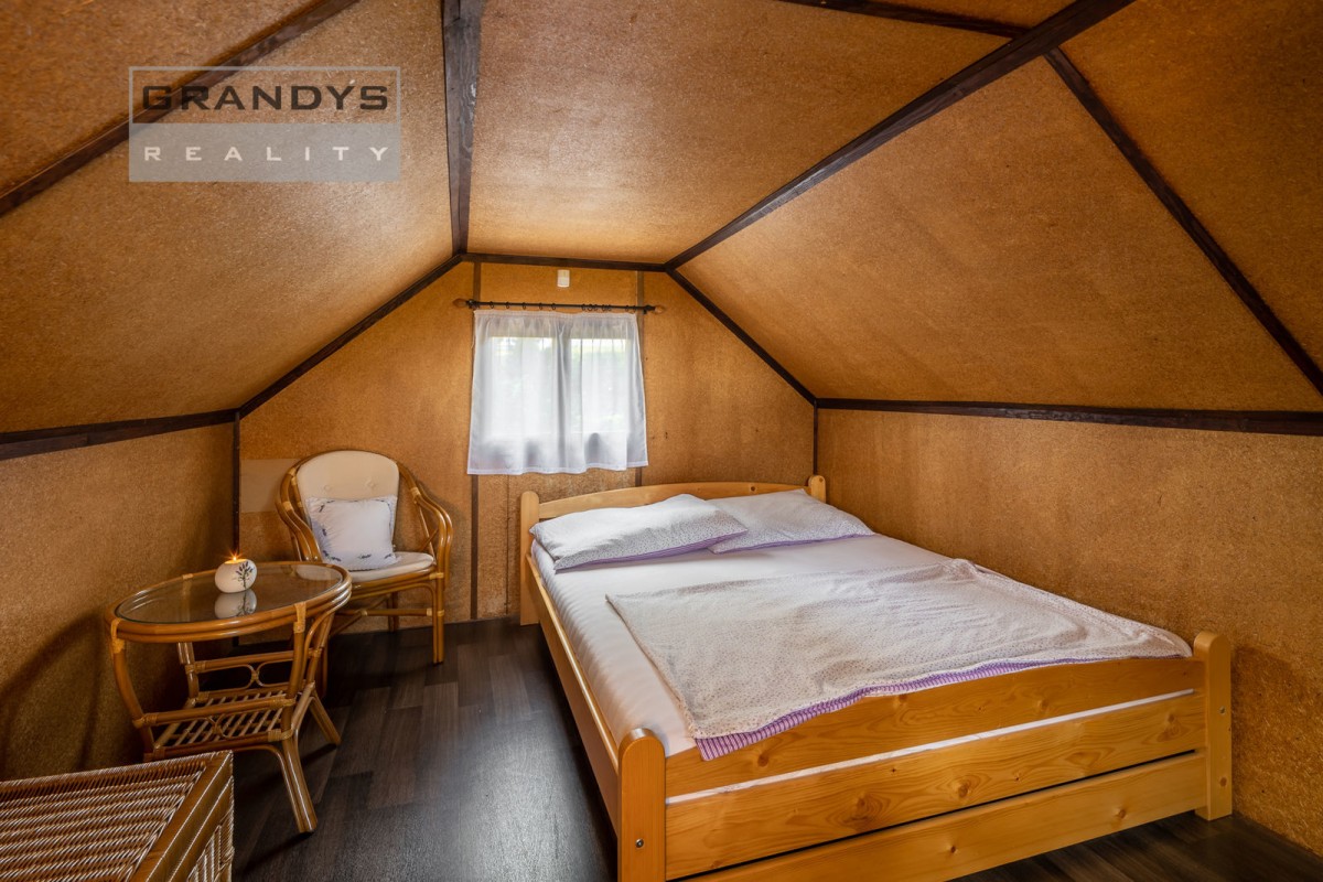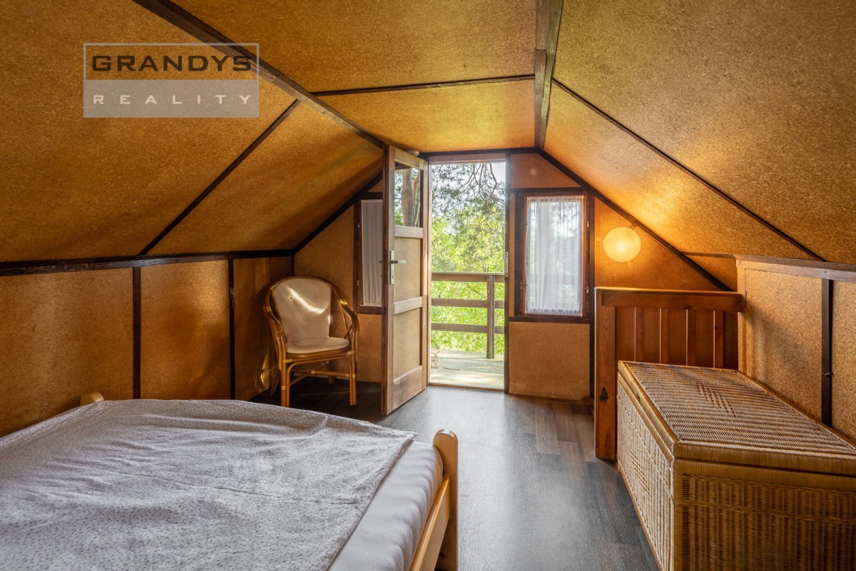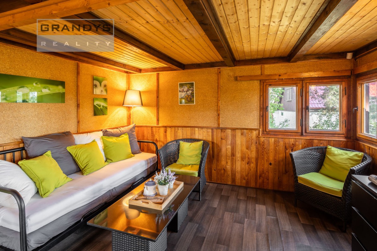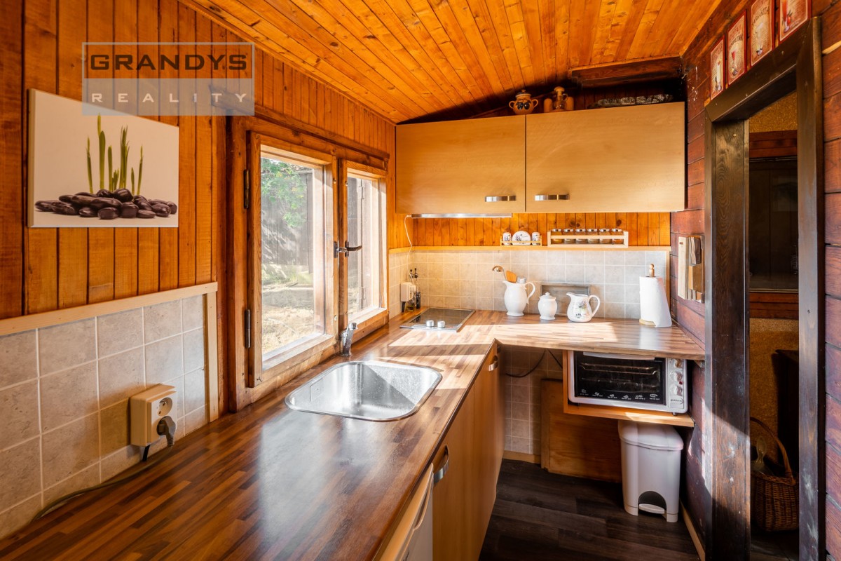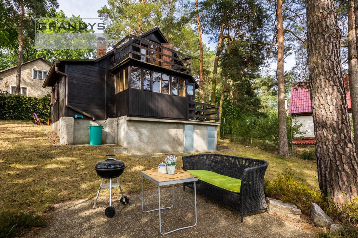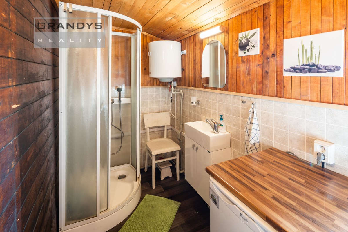 Nabízíme ke koupi dvoupatrovou chatu s prostornou zahradou ve Čtyřkolech, s dojezdem do 20 minut od Prahy. Nachází se v chatové oblasti, mezi vzrostlými stromy, naproti jízdárně Čtyřkolák. Dřevěná chata má zděné základy,... částečně podsklepená, a je napojena na obecní kanalizaci. Na pozemku se nachází cca 40m hluboká studna, voda a plyn jsou dotaženy k pozemku, zatím nepřipojeny. Vytápění pomocí elektrického přímotopu, elektrická varná deska a boiler. Vstup na toaletu je ze strany chaty, stejně tak i vstup do technické místnosti. Celý objekt je zabezpečen.