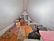 Na pokoj navazuje přístavba samostatné koupelny (3, 8 m2 – 2, 58 x 1, 48 m) přístupná ze vnitřku chaty osazená sprchovým koutem, umyvadlem a elektrickým bojlerem; po schodišti z obývacího pokoje je přístupný obytný půdní prostor (17 m2 – 5, 72 x 3 m) sloužící v současné době ke spaní.