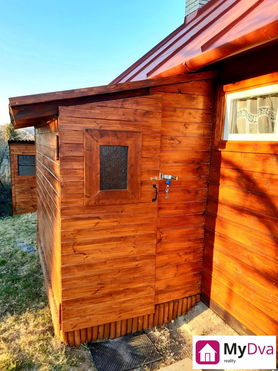 Exkluzivně vám nabízíme na známé znojemské Kraví hoře (katastrální území - Sedlešovice) k prodeji čistou chatu s užitnou plochou 43 m2 a s pozemkem (zahradou) téměř 600 m2. Pozemek je oplocen a skládá... se z pěti parcel. Na některé z parcel bude možnost i přistavět kůlnu, další chatu atd. Chata je napojena na elektřinu (v roce 2023 nově dělána elektřina z mědi od venkovního pilíře až po chatu, kde je dále v chatě rozvedena) a sezónní vodu, možnost realizace vrtané studny. Je ideální pro rodinnou rekreaci. Chata je dřevěná se zadní částí cihlovou. Je zateplena a disponuje plastovými okny, připraveným komínem pro útulný krb a podkrovním pokojíkem. Chata má menší sklepní otvor pro uskladnění vína, piva, vody a potravin v letních dnech. Venku se nachází suché sociální zařízení WC a místnost se dřezem, kde lze vybudovat navíc i např. sprchový kout. Uvnitř se nachází TV (+ anténa), sporák naveden na plynovou bombu, přední část chaty poslouží jako například ideální úschova pro kola, případně šatna s botníkem apod. Pozemek je rovinatý a je možnost příjezdu automobilem až k chatě a parkovat na pozemku. Nachází se zde i pár ovocných stromů (meruňky), tábořiště. Taktéž je zde úrodná půda s celodenním sluníčkem k pěstování zeleniny, květin apod.