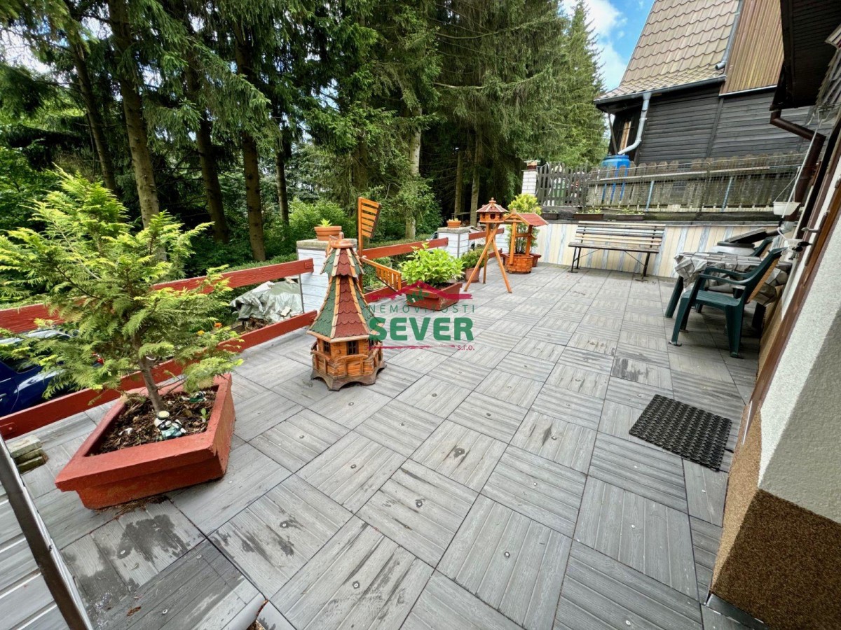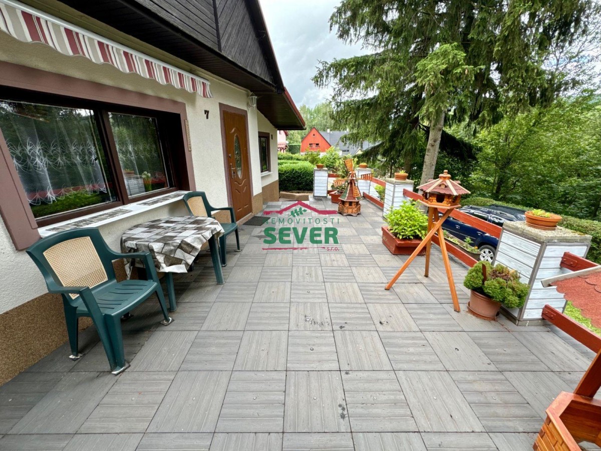 Nemovitosti SEVER vám zprostředkují koupi chaty se zahradou v osobním vlastnictví v horské obci Klíny, části obce Rašov. Chata s dispozicí 3+1 se nachází v zahrádkářské osadě v okraj...ové části obce v blízkosti lyžařského areálu Klíny. Přízemí chaty se skládá ze zádveří, kuchyně, ložnice, koupelny a obývacího pokoje se vstupem do podkroví, kde se nalézá druhá ložnice. V koupelně je k dispozici sprchový kout a chemická toaleta. Zděná chata má novou fasádu. Do chaty je přivedena elektřina 230V. Voda je pouze dešťová, ta je svedena do barelů, ze kterých je čerpána do koupelny a kuchyně. Vytápění je řešené krbovými kamny. Před chatou je vystavěna prostorná terasa s markýzou a sezením, pod terasou je kůlna na nářadí. Na pozemku jsou k využití další 3 kůlny. Ze svažité zahrady za chatou a pod lesem je hezký výhled na Krušné hory. Parkování je možné před chatou. Veškerou občanskou vybavenost nalezneme ve zhruba 5 kilometrů vzdáleném Litvínově, je možné využít autobusové dopravy. V případě zájmu zajistíme optimální variantu financování na tuto nemovitost za zvýhodněných podmínek pro naše klienty.