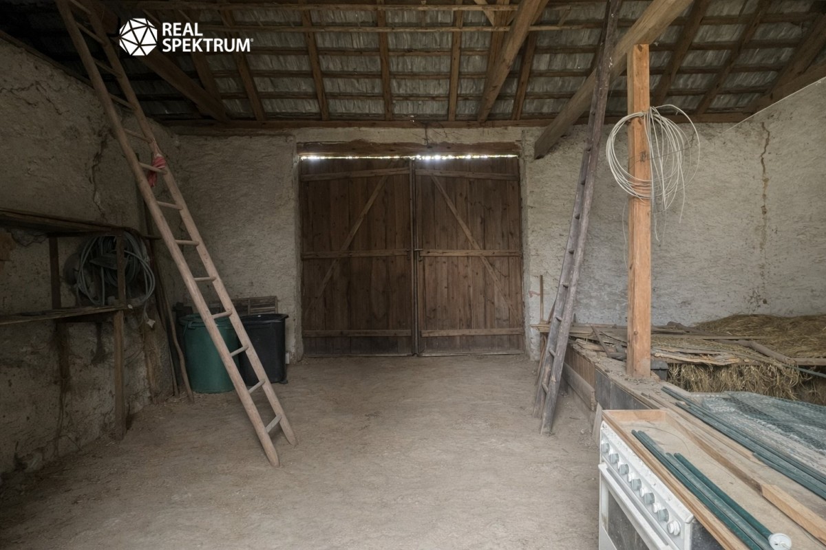Součástí nemovitosti je uzavřený dvůr, který poskytuje dostatek soukromí, a navazující hospodářské stavení. Nad obytnou částí se nachází půda s dalším potenciálem využití.