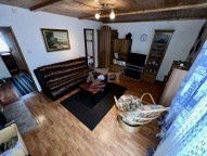 Vrchní část chaty je dřevěná a nachází se v ní obytné prostory v podobě prostorného obývacího pokoje s terasou, dvou malých ložnic, kuchyně a koupelny se sprchou a toaletou + předsíň/chodba.