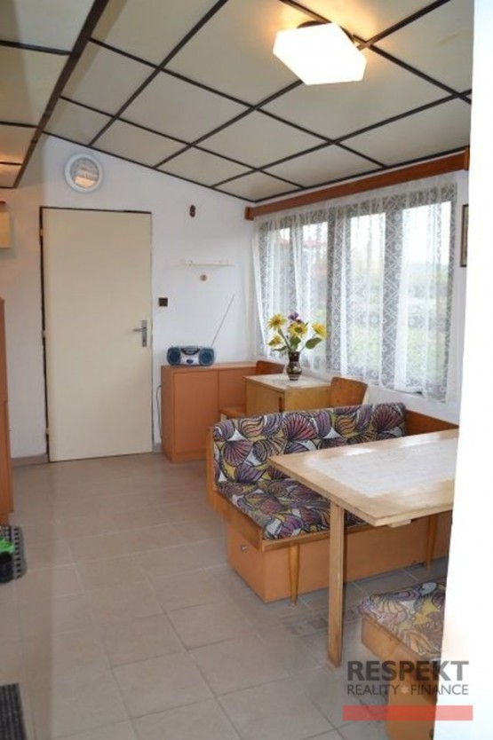 REZERVOV (osobní vlastnictví)ÁNO. Exkluzivně. Dovoluji si Vám nabídnout ke koupi prostornou chatu s podlahovou plochou 57, 1 m2 (včetně sklepa o ploše 6, 2 m2), vystavěnou na stavebním, mírně svažité...m pozemku, kterou lze po mírných úpravách užívat k celoročnímu bydlení. Samostatně stojící chata s vynikajícím poměrem ceny a užitné hodnoty je umístěna v kolonii chat a domů k bydlení v obci Ondřejov, části obce Turkovice. Chata je napojena na elektřinu, vodu získává z vlastní vrtané studny, odpad je sveden do septiku umístěném na pozemku. Je zděná z cihel, vnější plášť je zateplen, s novou fasádou, okna jsou kvalitní dřevěná s dvojitým zasklením, střešní krytina kvalitní plech, podlahy betonové, kryté PVC nebo dlažbou. Vytápění je vyřešeno lokálními kamny, voda je přečerpávána do venkovního zásobníku, ze kterého je k dispozici pro koupelnu a sociální zařízení WC. Dispoziční uspořádání je velice praktické. Vstupujete do prostorné, prosklené verandy, ze které vcházíte do koupelny s sociální zařízení WC a do kuchyně (k. linka, PB sporák, dřez, voda zatím nenapojena); z kuchyně je pak přístupný další pokoj a podkroví chaty, kde jsou k dispozici 2 ložnice. Vlastníci užívají chatu téměř celoročně, chcete - li ji užívat i v zimě, je třeba zavést vodu ze studny (cca 3 m od paty domu) do interieru objektu (koupelna, kuchyně). Okolí chaty je udržované, s výstavní skalkou, skleníkem, udržovaným trávníkem a ovocnými stromy. Parkování možné na pozemku. Dostupnost chaty je vynikající: exit 21 Mirošovice je vzdálen 10 minut, okraj Prahy celkem do 20 minut jízdy autem. Občanská vybavenost je k dispozici v nedalekých Hrusicích nebo Ondřejově. Máte - li zájem o klidné místo k odpočinku či celoročnímu bydlení, ráda Vás přivítám na prohlídce. Na setkání s Vámi se těší Kamila Novotná.