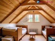 Jedná se o jednopodlažní budovu se d...věma pokoji, komorou, toaletou a kuchyní, která je umístěna v předsíni. Část chaty je podsklepena a v podkroví je další obytný prostor cca 24 m2. Do objektu je zavedena elektřina 230/400 V, voda je k dispozici z venkovní studny, odpad je řešen septikem. Podlahy jsou z dřevěných OSB desek, okna jsou původní dřevěná. Nová plechová střešní krytina a komín.