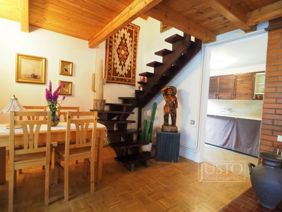 V zastoupení majitele nabízíme k prodeji stylovou chatu u obce Lnáře, v moc hezkém prostředí jižních Čech vhodnou pro zájemce, kteří hledají klidné prostředí pro relaxaci a odpočinek. Majitel při stavbě této chaty použil v...elké množství přírodního materiálu, čímž tuto nemovitost citlivě zasadil do okolní přírody a místního borovicového porostu. Zděná stavba v kombinaci se srubovými trámci v přední a postranní části byla postavena a kolaudována v roce 1983. Interiér o dispozici 3+1 je velice dobře řešen. I zde majitel využil dřevěné stavební prvky, díky tomu interiér působí příjemným a útulným dojmem. Podlahová plocha činní cca 70 m², zastavěná plocha činní 50 m². Kromě zastavěné plochy tvoří funkční celek s touto nemovitostí vlastní pozemek o výměře 303 m² a dále lze využívat pozemek o výměře pozemek 200 m² užívaný na základě nájemní smlouvy. Vnitřní dispozice: v přízemí se nachází hlavní společenská místnost s jídelnou a vstupem na venkovní terasu, kuchyně a dále koupelna se sprchovým koutem a samostatné sociální zařízení WC. V podkroví se nachází dvě útulné ložnice, lodžie a malá půdička. Vnitřní vybavení je součástí prodeje. Chata je vytápěna centrálním krbem s teplovodním výměníkem s rozvodem tepla do všech místností, ohřev vody zajišťuje bojler, na pozemku vlastní studna, septik, elektřina 230 i 380V. Příjezd automobilem je možný až na pozemek, na kterém lze pohodlně zaparkovat, obecní příjezdová komunikace. Tato nemovitost se nachází v klidné okrajové části obce Lnáře, ve které je k dispozici například restaurace, obchody, autobusová zastávka a veškerá další občanská vybavenost se nachází v okolních městech Blatná, Strakonice, Písek nebo 50 km vzdáleném městě Plzeň.