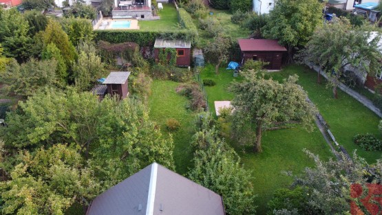 Na pozemku je možno parkovat po přístřeškem na který navazuje sklad dřeva. Zahrada osázena plodícími ovocnými stromy a keři. V zadní časti i malá dílna.