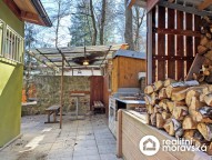Za chatou je zastřešené posezení s udírnou, dřevníkem a kůlnou, před chatou je odpočinková zóna s posezením, houpací lavicí a ohništěm.