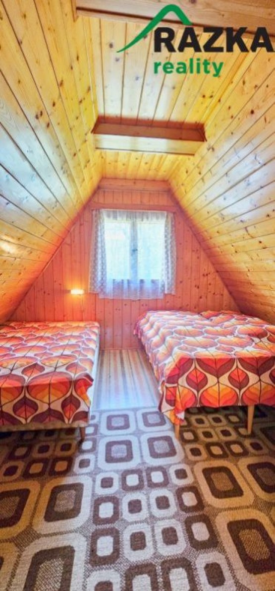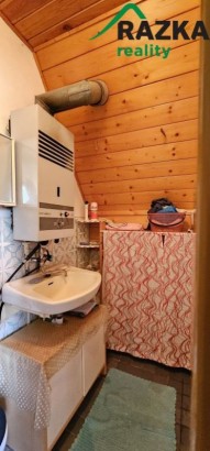 Celková plocha pozemku je 565 m2, zastavená plocha je 63 m2. V přízemí chaty se nachází vstupní chodba, obývací pokoj s jídelnou a krbem, kuchyně, koupelnou s karmou na ohřev vody (na PB) a sociální zařízení WC. V patře se nachází dva samostatné pokoje. Vytápění chaty je řešeno krbem umístněným v obývacím pokoj. Odpad je sveden do jímky o kapacitě cca 4 m3. Voda je řešena studnou. Dále je k dispozici studna, která se v současné době využívá k zalévání zahrady.