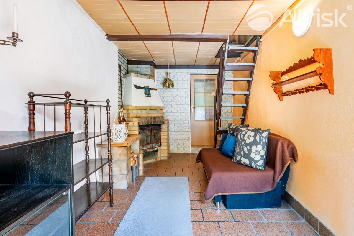 Dům je dispozičně řešen jako 1+1 v přízemí s předsíní,  přičemž v patře,  dostupném po prudkých dřevěných schodech,  se nachází dva menší propojené podkrovní pokoje.  Koupelna se sprchovým koutem a toaletou je přístupná přes dvůr,  kde se také nachází menší posezení a dílna.  Za dvorem navazuje úzká dlouhá zahrada,  která vede do svahu a je zakončena brankou vedoucí do přilehlého lesa.