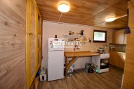 - přízemí: kuchyň, prostorný obývací pokoj s krbovými kamny a francouzským oknem se vstupem na terasu, vstupní chodba, sociální zařízení WC, technická místnost (přístup zvenčí)