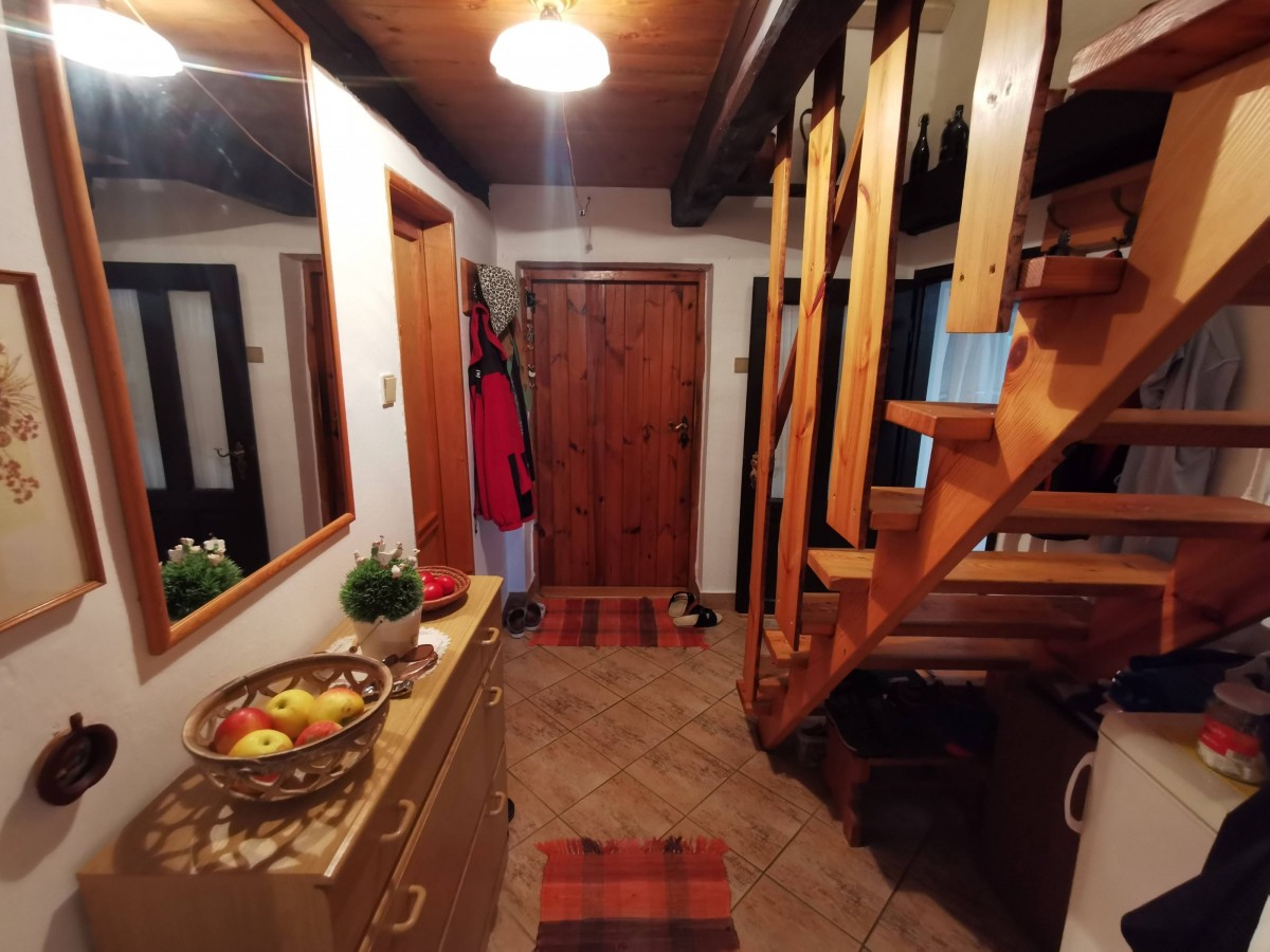 Nabízíme k prodeji stylovou chalupu na výjimečném místě s nádherným výhledem na údolní nádrž Lipno v obci Slupečná, Lipno nad Vltavou. Jedná se o samostatnou polovinu domu( stavebně oddělenou) s vlastním číslem popisným a v...lastními přiléhajícími pozemky, kde jsou umístěny vedlejší stavby( pergola s krbem, terasa, 2 přístřešky na dřevo, studánka apod. ). Nemovitost je umístěna na moc hezkém místě plném přírody v přímém sousedství lesa s pěší dostupností nedalekého lyžařského areálu Kramolín, Stezky korunami stromů, přehrady Lipno apod. . Dům má jedno nadzemní podlaží a obytné podkroví s celkovou užitnou plochou 88m2, přiléhající pozemky s celkovou výměrou 1944m2, zahrnují zastavěnou plochu o výměře 449m2, na které se nabízí ještě možnost umístění další stavby, nebo přístavby k současnému domu. Vytápění domu zajištují krbová kamna na dřevo, ohřev vody - bojler, přípojka elektro - 220/380V , odpad septik, voda společný vrt + studánka(horský pramen se stálým průtokem, pitná voda).