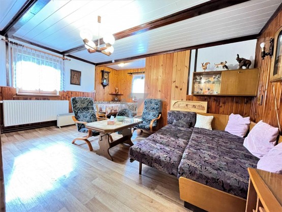V zastoupení majitele Vám naše společnost nabízí chatu, samostatně stojící dřevostavbu o zastavěné ploše 98 m2, podsklepenou, se sedlovou střechou, o disp. 4+1 + menší ...ložnice (cca 200 x 230 cm), s rozsáhlými pozemky (11 234 m2), třemi hospodářskými stavbami, garážovým stáním a dvěma studnami na pitnou vodu. Chata byla v letech průběžně rekonstruovaná, když byla postupně provedena celková rekonstrukce: střecha, okna, podlahy, ÚT, kotel na tuhá paliva, ocelové radiátory, elektroinstalace v mědi, rozvody vody v plastu, koupelna společně se splachovacím sociální zařízení WC, kuchyně a obytné místnosti, odpady svedeny do veřejné kanalizace, napojení chaty na obecní vodovod .