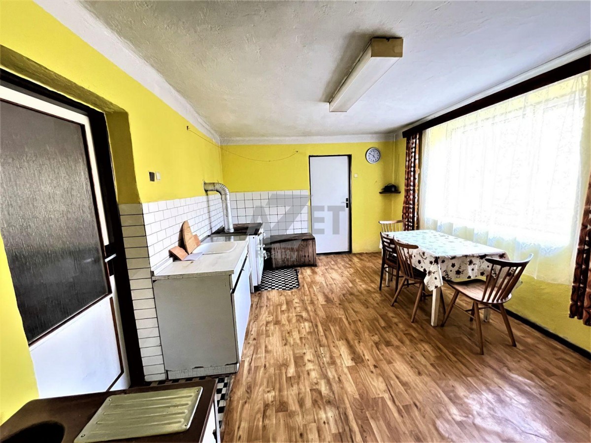 Naše společnost Vám exkluzivně v zastoupení majitele nabízí jednopodlažní nepodsklepený rodinný dům - chalupu \190 m2\ s oplocenou zahradou, v turisticky atraktivní lokalitě obce Dětřichov nad Bystřicí \krátká d...ojezdová vzdálenost do Ski Areálu Kopřivná - 27 min. jízdy autem\. Původní selské stavení bylo postaveno přibližně v roce 1900 a je v původním stavu, určené k rekonstrukci. Přístup z obecní komunikace. Samotnou stavbu tvoří převážně kámen \dle katastru kámen, cihly, tvárnice včetně kombinací\. Přízemí budovy je dispozičně řešeno prostornou vstupní předsíní, propojovací chodbou, místností s kuchyní, které dominují historická, litinová, kuchyňská kamna. Z kuchyně jsou vstupy do prostoru koupelny společně s sociální zařízení WC a dvou pokojů propojených dveřmi \hlavní obývací místnost s krbovými kamny, ložnice\. Přízemí budovy dále disponuje několika technickými místnostmi, které původním majitelů sloužily hlavně jako sklep, několika prostornými komorami a garáží \cca 20 m2\. Podkroví \cca 80 m2\ umožňuje vybudovat další bytovou jednotku 2+kk. Podlahy v domě tvoří škvárobeton, podlahovou krytinu PVC a koberce v místnostech. V koupelně, propojovací chodbě a vstupní předsíni kryje podlahy dlažba. Vytápění do ústředního topení (litinová topná tělesa) je realizován kotlem na tuhá paliva. Ohřev teplé vody elektrickým bojlerem. Střešní krytina břidlice. Dřevěná okna. Vodovodní řád - pitná voda za nízkou cenu \"28, - Kč/m3"\, platí se pouze "vodné". Elektřina 230 i 380 V. Odpady svedeny do jímky. Úsporu při rekonstrukci domu nabízí možnost využití státní dotace na zateplení a pořízení ekologického kotle. Pozemek kolem domu je zcela oplocen drátěným plotem. Celková výměra pozemku tvoří 784 m2, z toho je zastavěná plocha domu 188 m2, zahrada 594 m2. Velkým plusem prezentované nemovitosti je možnost pronájmu přilehlého obecního pozemku - zahrady o ploše 592 m2 za cenu 1, - Kč/m2/měs. Krátká dojezdová vzdálenost také do blízkých aglomerací \Olomouc 35 min. , Šternberk 15 min. , Bruntál 18 min. , Opava 35 min. jízdy autem\. Dostupnost autobusové dopravy, žel. stanice pár minut pěší chůzí. Občanská vybavenost ve všech směrech. V případě Vašeho zájmu zajistíme financování nemovitosti zdarma s výhodným úrokem. Energetický štítek v současné době není k dispozici, proto dle zákona uvádíme energetickou třídu "G". Finanční poradenství zajistíme zdarma se zvýhodněným úročením. Pro více informací kontaktujte našeho makléře. Doporučujeme Vám prohlídku. Těšíme se na Vaší návštěvu.
