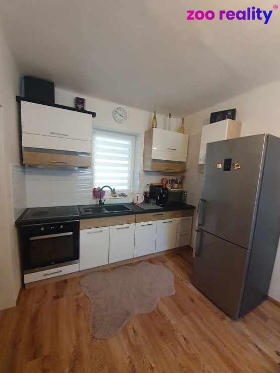 Zateplený dům je po vnitřní rekonstrukci se saunou, velkou prosklenou pergolou s krbem a zastřešeným parkováním u domu.