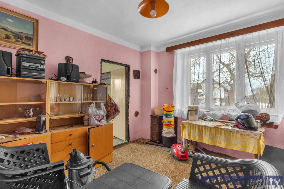 Dispozice přízemí – chodba se vstupem do místnosti, koupelna, sociální zařízení WC, kuchyňka, obývací pokoj s kamny, ložnice, pokoj, stodola (sloužící jako dílna, dřevník, další využití), půda provětrávaná se vstupem zvenku.