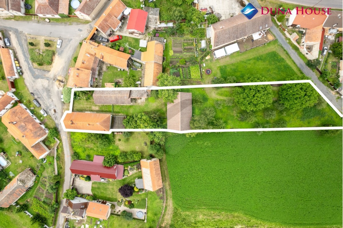 Na zahradě se nachází dvě hospodářské budovy a stodola s novou střechou. Objekt se skládá ze dvou, stodolou oddělených pozemků, jeden pozemek je možné výhledově použít stavební a je součástí této nabídky. V obci je realizována výstavba a připojení objektu na obecní kanalizaci.