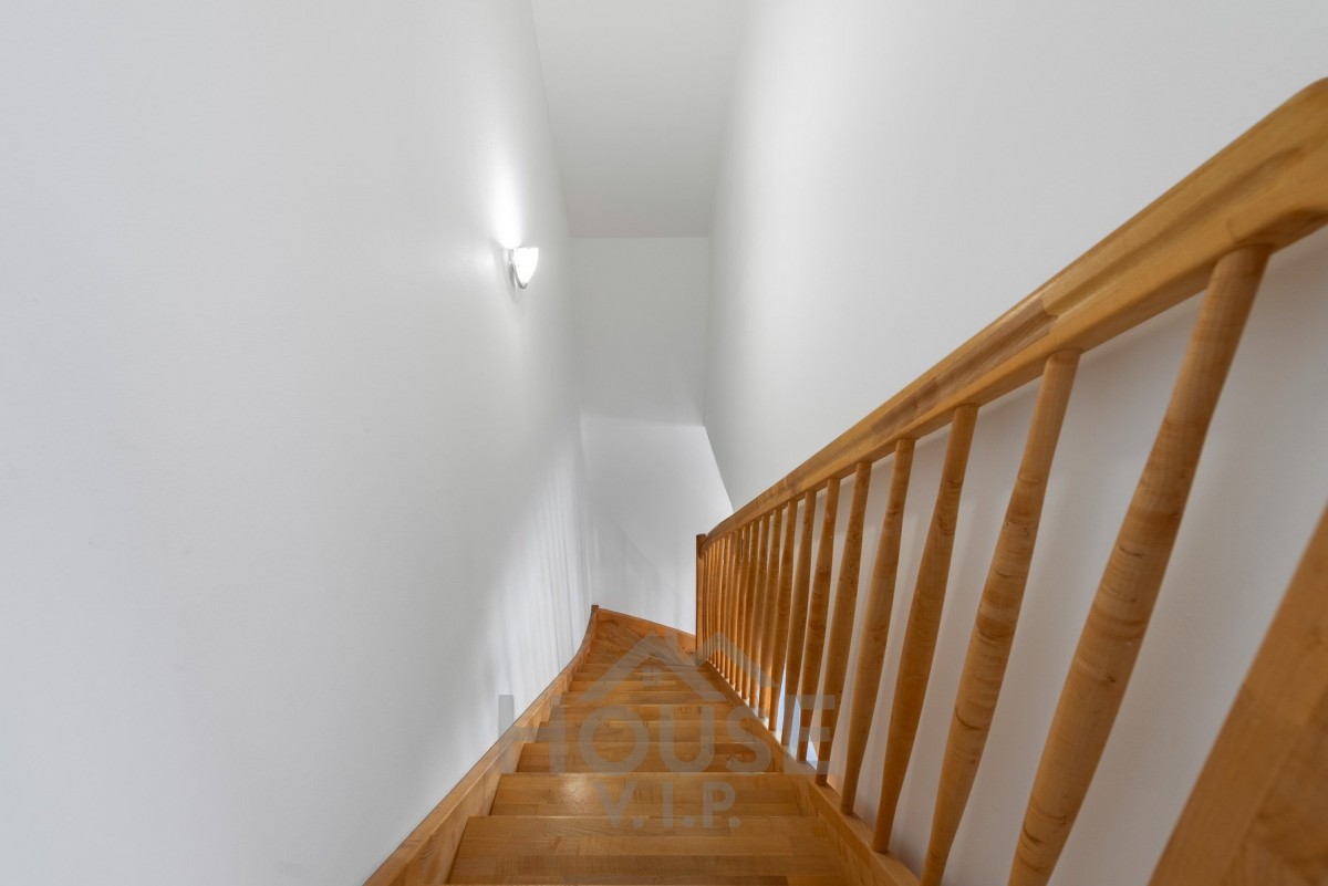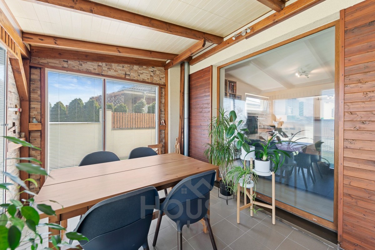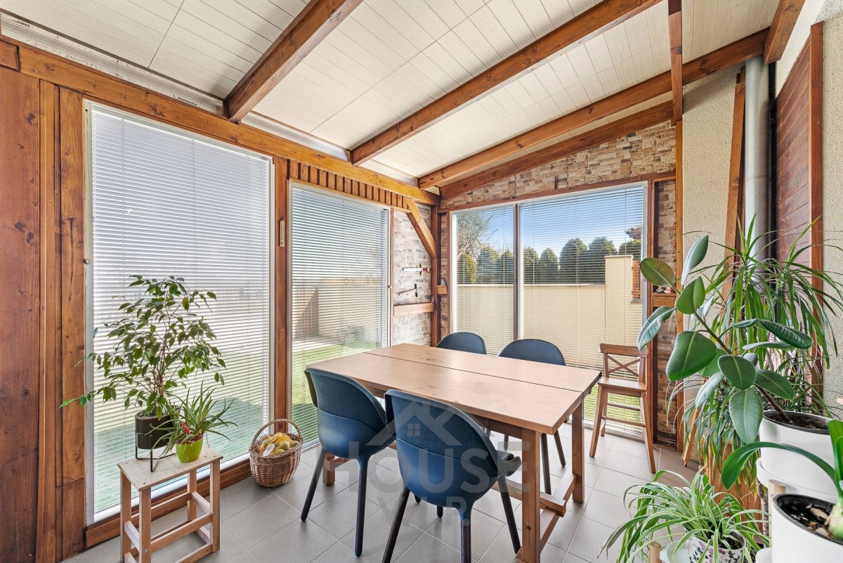 V přízemí se nachází obytná část s podlahovým vytápěním, které zajišťuje příjemné teplo a pohodlí během celého roku. Součástí domu je také zimní zahrada (17 m2) s přímým vstupem na zahradu, která poskytuje ideální místo pro relaxaci i posezení s rodinou či přáteli.