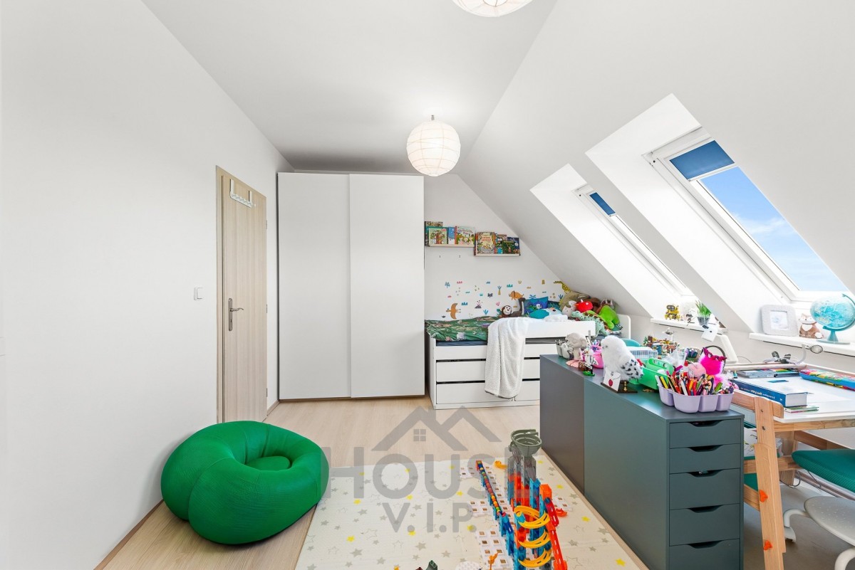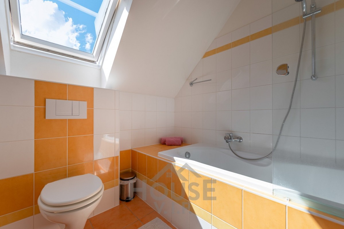 V patře jsou pokoje vybaveny radiátory, přičemž koupelna disponuje kombinací podlahového vytápění pro vyšší komfort. Velkou výhodou nemovitosti je možnost dalšího rozšíření – na půdě lze vybudovat další obytný pokoj a obdobný potenciál nabízí i zimní zahrada, ze které lze vytvořit plnohodnotný pokoj.