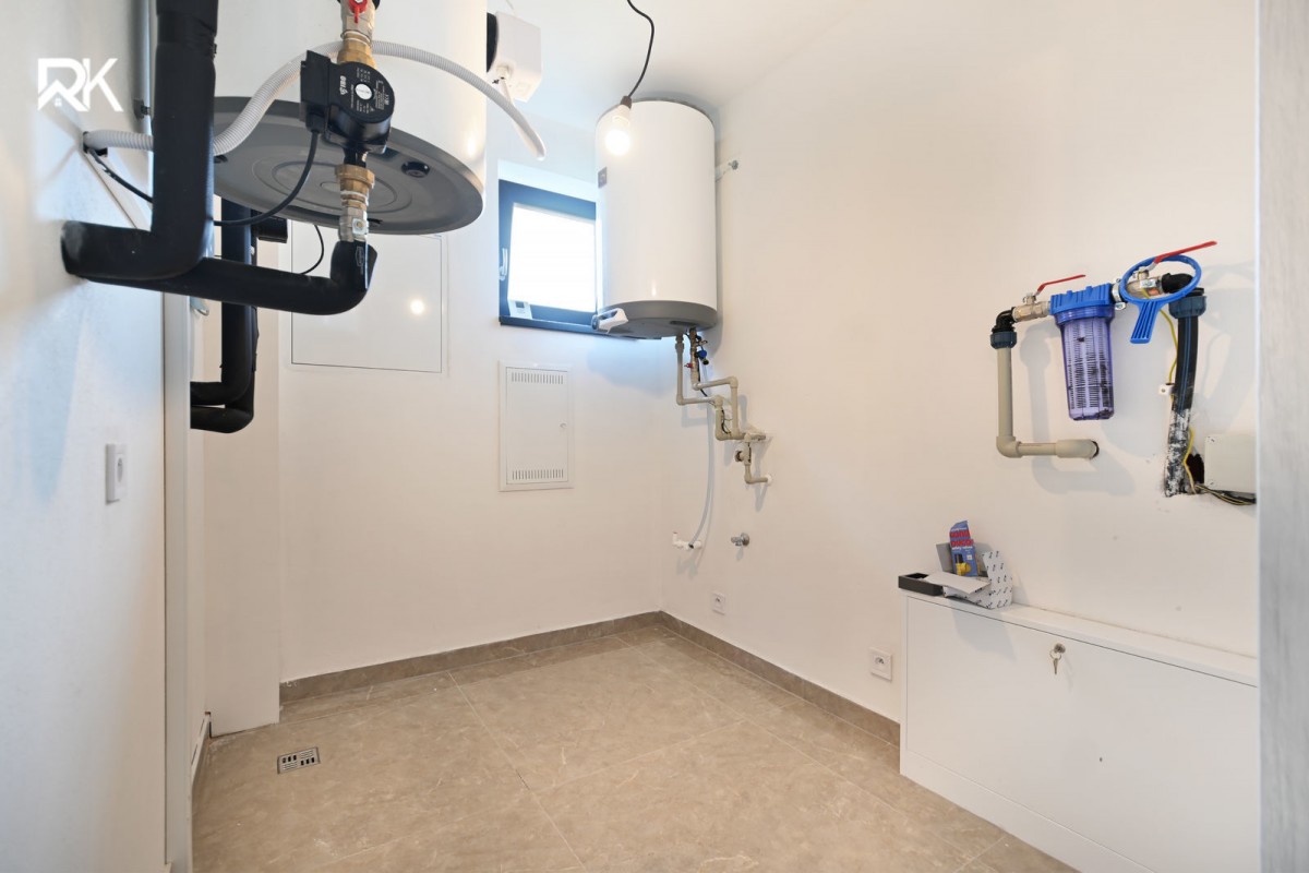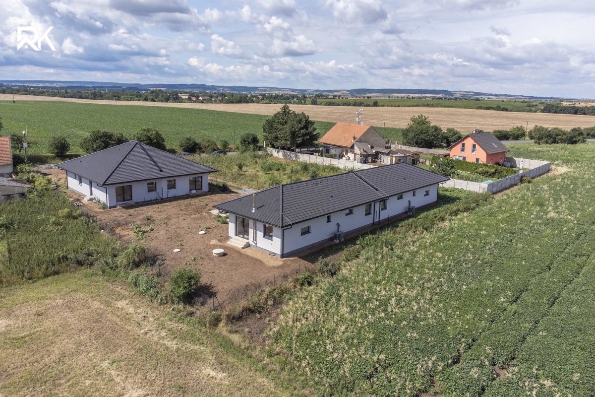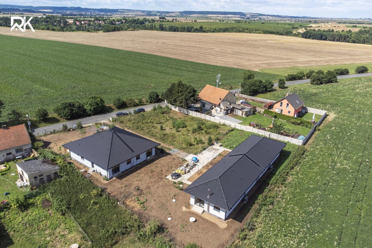 Vytápění a ohřev vody je řešen tepelným čerpadlem. Dále příprava na komín, zateplení 14ti - cm polystyrenem, okna s trojsklem. Každý bungalov má svou nezávisle vrtanou studnu 50m. Střecha je orientovaná na jih, tudíž je vhodná k umístění fotovoltaických panelů. Součástí je podlahové topení, parkovací stání, pochozí půda, ze které lze vytvořit úložný prostor. RD (rodinný dům) se skládá ze tří ložnic, dvou toalet, koupelny s vanou a sprchovým koutem - bezbariérový, obývacího pokoje s kuchyní a technické místnosti. Dále prostorné zádveří. Každý pokoj má přípravu pro vestavěné skříně.
