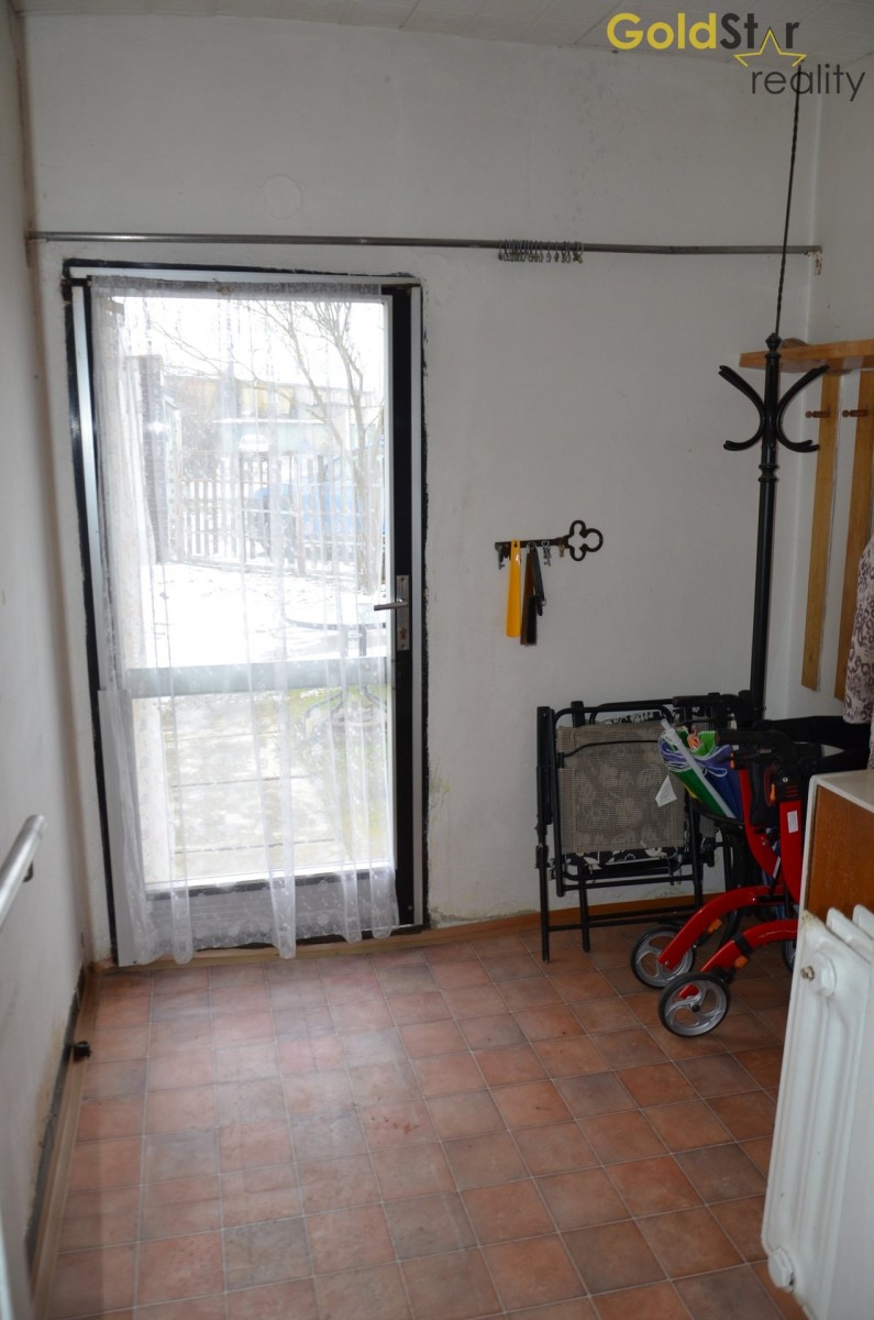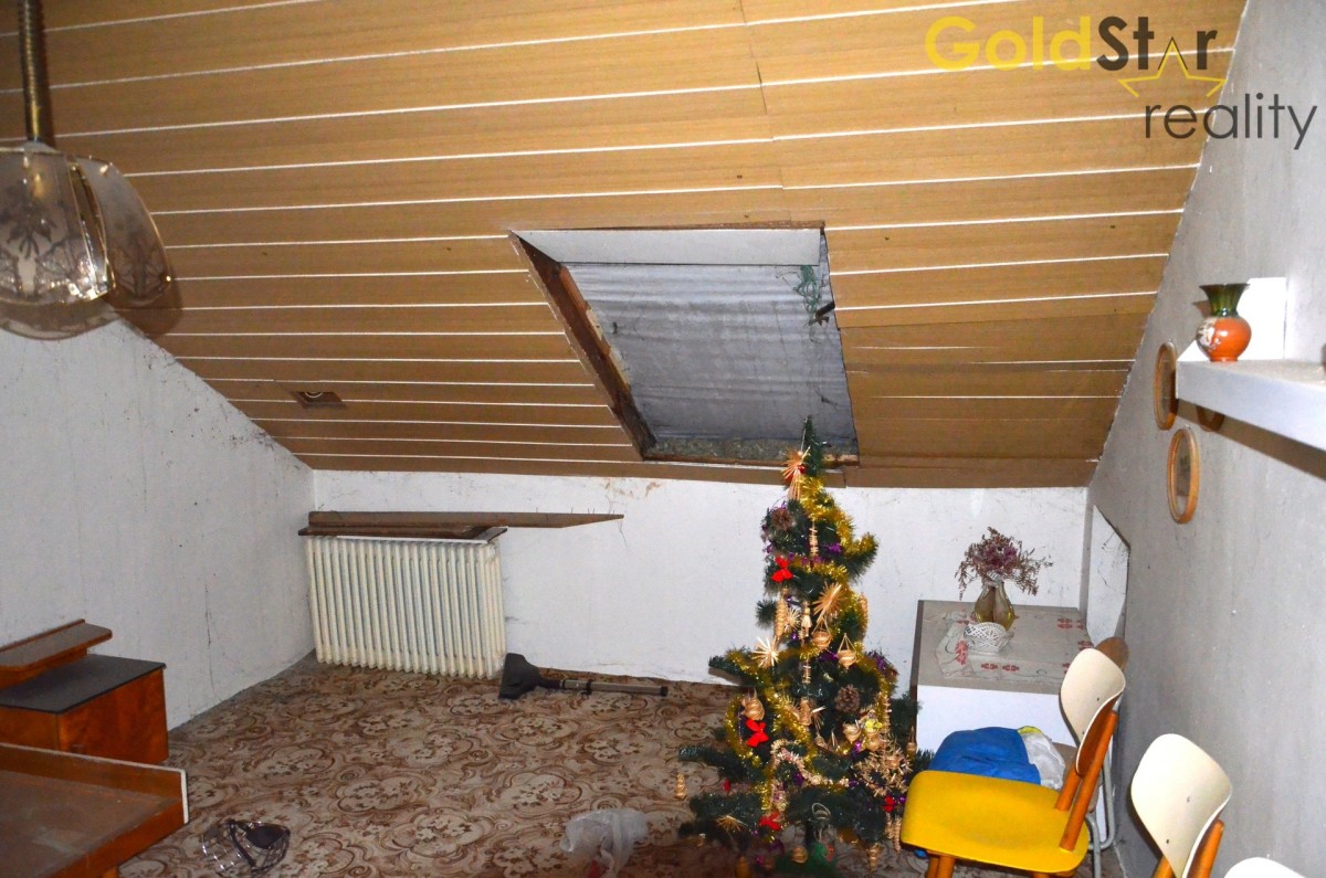 Dispozice domu: zádveří se vstupem, průchozí kuchyně se vstupem do pokoje, dva samostatné neprůchozí pokoje (ložnice + obývací pokoj), koupelna, samostatné sociální zařízení WC, vstup do patra po schodišti: pokoj + menší pokoj.