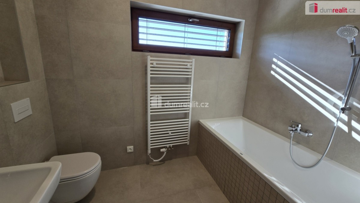 Tento dům je vybaven špičkovým teplovodním podlahovým vytápěním s kondenzačním kotlem pro dokonalý tepelný komfort a keramickým komínem s přípravou pro krb, což dodává interiéru na útulnosti a stylu. Impozantní interiérové dveře o výšce 2100 mm přidávají na luxusu a eleganci. Panoramatická posuvná okna v obývacím pokoji vedou přímo na zahradu a propojují interiér s exteriérem, což přináší jedinečný pocit prostoru a propojení s přírodou.