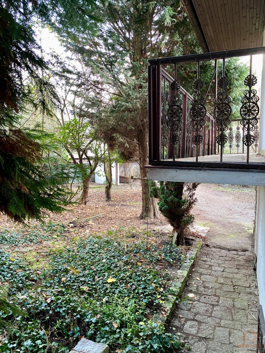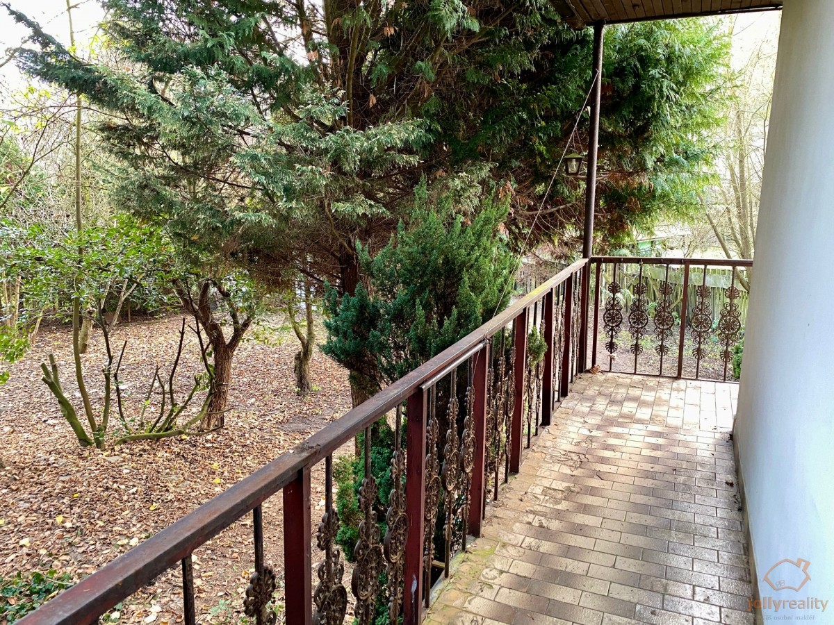 Přes chodbu v prvním nadze...mním podlaží je vstup do koupelny, sociální zařízení WC, kuchyně, ložnice a do obývacího pokoje s krbem a velkým balkonem. Z balkonu je hezký výhled do zahrady a směrem k řece. V přízemí domu je technická místnost, dva pokoje, sociální zařízení WC, sklípek a prostorná garáž. Patra jsou propojena schodištěm.