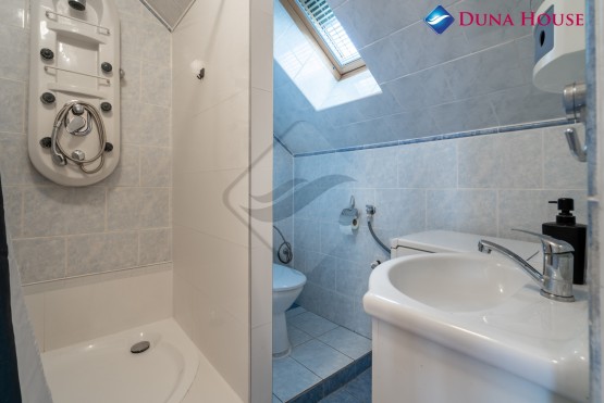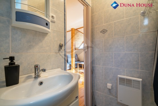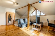 V horním patře domu se nachází předsíň, plně vybaven obývací pokoj s kuchyní, koupelna se sprchovým koutem a sociální zařízení WC. Ve spodní části domu je umístěna dvou garáž. Topení je zajištěno přímotopy. Všechny okna v domě a vstupní dveře jsou vybaveny elektrickou roletou. Dům je vybaven kamerovým a zabezpečovacím systémem. Součástí jsou elektrická garážová vrata a elektrická brána na dálkové ovládání.