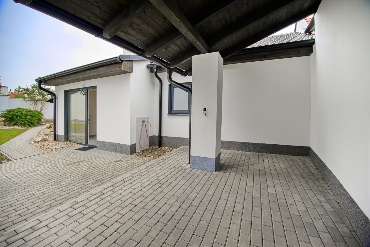 Prodej přízemního rodinného domu 4+kk po kompletní rekonstrukci v obci Morkůvky. Dům prošel velice zdařilou celkovou rekonstrukcí a změnou dispozice. Z původního zdiva zbyla je...n část nosné stěny z uliční strany, které bylo kompletně odizolováno, ve zbytku stavby proběhla nová vyzdívka. Pod podlahou byla provedena nová vlhkostní i tepelná izolace. Kompletně nová dřevěná vazba, krytina, stropy, podhledy. Dále byly provedeny veškeré povrchy, instalace, rozvody, okna, dveře, sanita. Prakticky se jedná o novostavbu rodinného domu. Dům je přízemní polořadový – krajní, půdní prostor k bydlení nevyužit. Rovněž proběhla kompletní renovace dvorního traktu. Byla položena nová dlažba, zaset nový trávník, došlo k opravě opěrných zdí, nově byly vystavěny dva přístřešky pro venkovní posezení. V současnosti se dodělává zbytek oplocení. K dispozici jsou také dva menší klenbové vinné sklepy přístupné ze dvora. Celková obytná plocha domu je 108 m2, pozemek 329 m2. K dispozici rovněž parkování na vlastním pozemku.